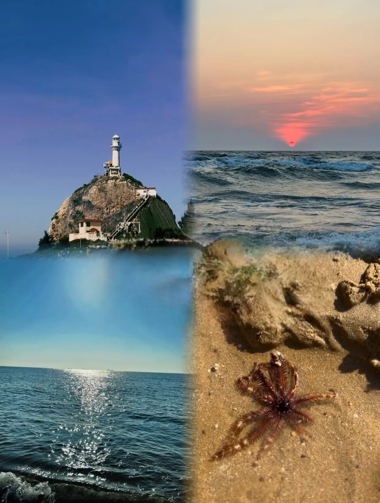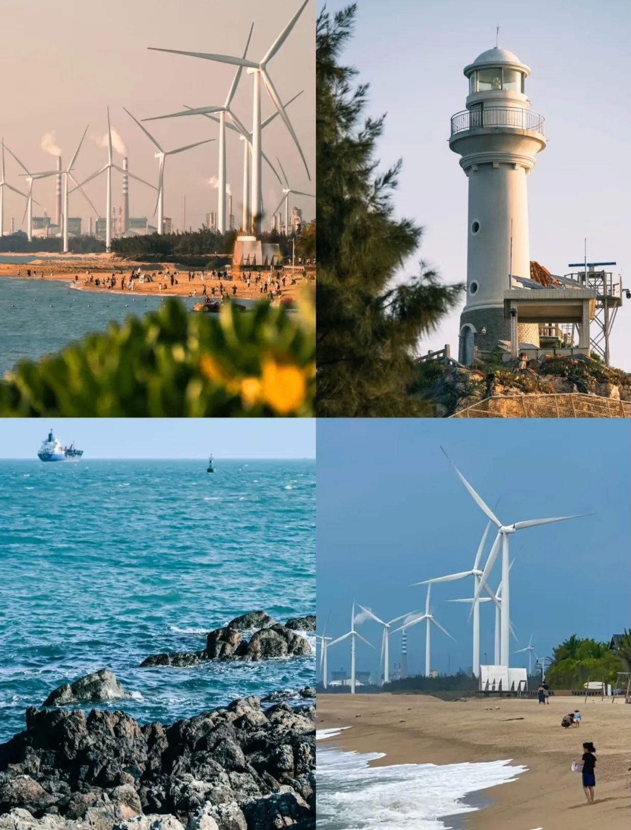 我的第一站是东方市八所镇西南海滨的鱼鳞洲。这里在清朝康熙年间就被列为海南风景名胜之一,如今仍以其原始海岸风光吸引着游客。我沿着海滩漫步,脚下是颗粒较大的小石沙滩,走起来松软中略带刺痛,与常见的细沙海滩很是不同。最引人注目的是那座矗立在岩石小山上高约18.6米的灯塔,它是北部湾的重要航标,红白相间的塔身在蓝天碧海映衬下格外醒目。海滩上耸立的18座巨大风车,随风转动,给海岸线增添了一道独特风景。傍晚时分,我在这里欣赏到了壮美的日落景象,夕阳余晖将海面染成金黄,果然名不虚传的“橘子海”美景。