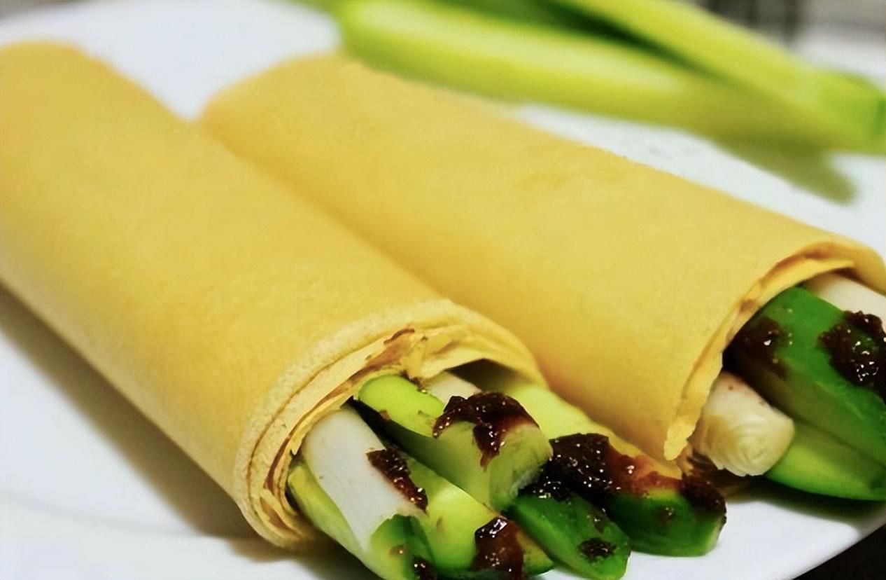 · 煎饼卷大葱:山东标志性食物,随处可见。