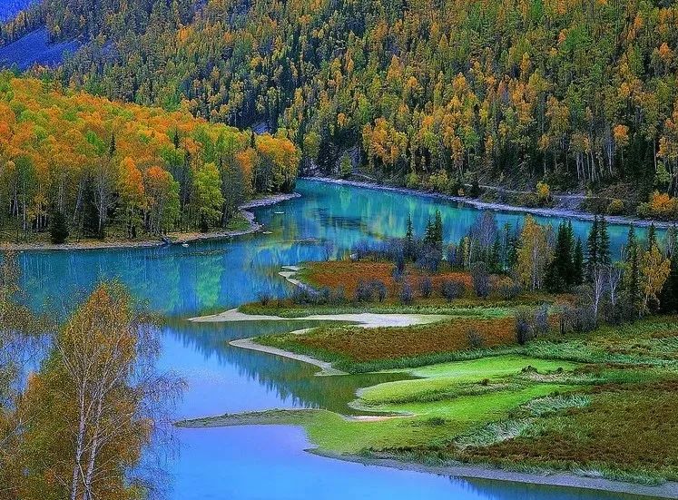 喀纳斯:位于阿尔泰山中段,集高山、森林、河流、湖泊、草原于一体,保持着原始的自然风貌,有“人间仙境、神界花园”之美誉。主要景点有喀纳斯湖、卧龙湾、白哈巴村、禾木河谷等。这里四季皆美,金秋时节满山斑斓,宛如童话世界 。