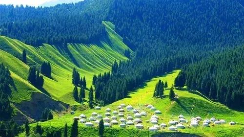 那拉提:地处天山腹地,伊犁河谷东端,集草原、沟谷、森林、湿地于一体,是著名的牧场,有“天山绿岛”之美誉。主要景点有天界台、游牧人家、塔吾萨尼等,与哈萨克民俗风情相互掩映,游人可参加骑马、射箭等草原活动 。