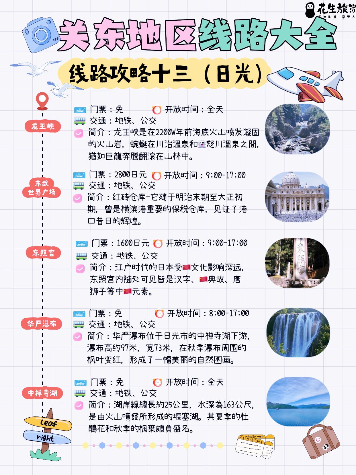 线路13(日光):龙王峡-东武世界广场-东照宫-华严瀑布-中禅寺湖
