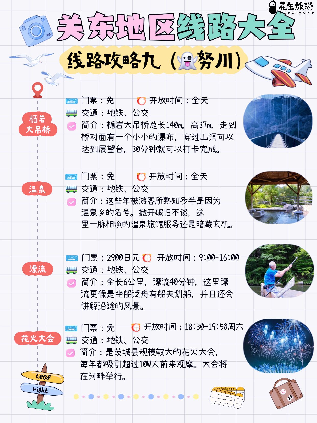 线路9(努川):楯岩大吊桥-温泉-漂流-花火大会