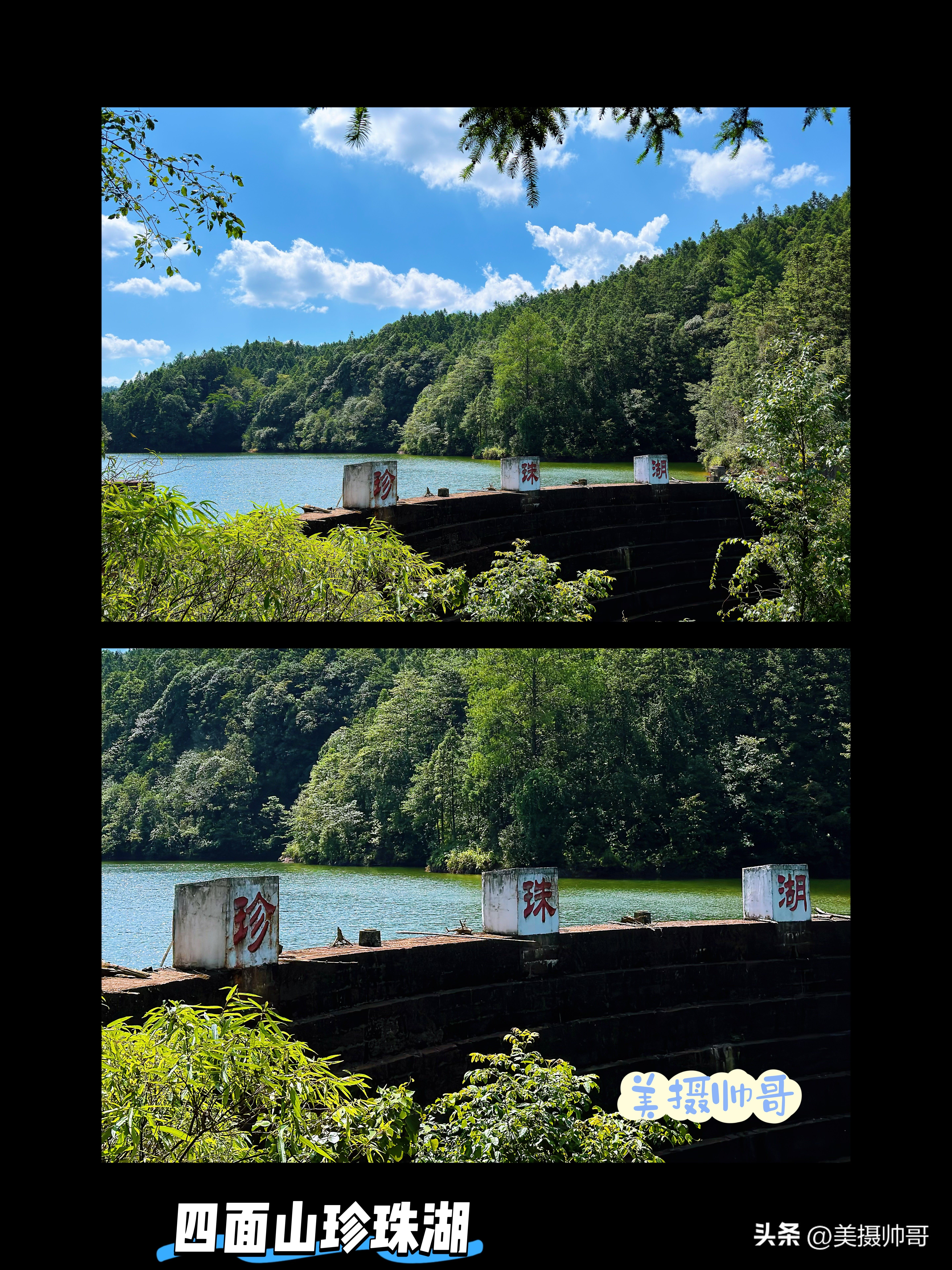 珍珠湖位于江津四面山中南部天台之上,海拔1300米,是四面山海拔最高的湖泊。作为四面山八大水库之一,该湖保留了最原始的自然生态特征,湖水清澈达到国家一级水质标准,四周环绕丹霞赤壁地貌与原始丛林,湖区内形成"银珠状水流"的独特自然景观。