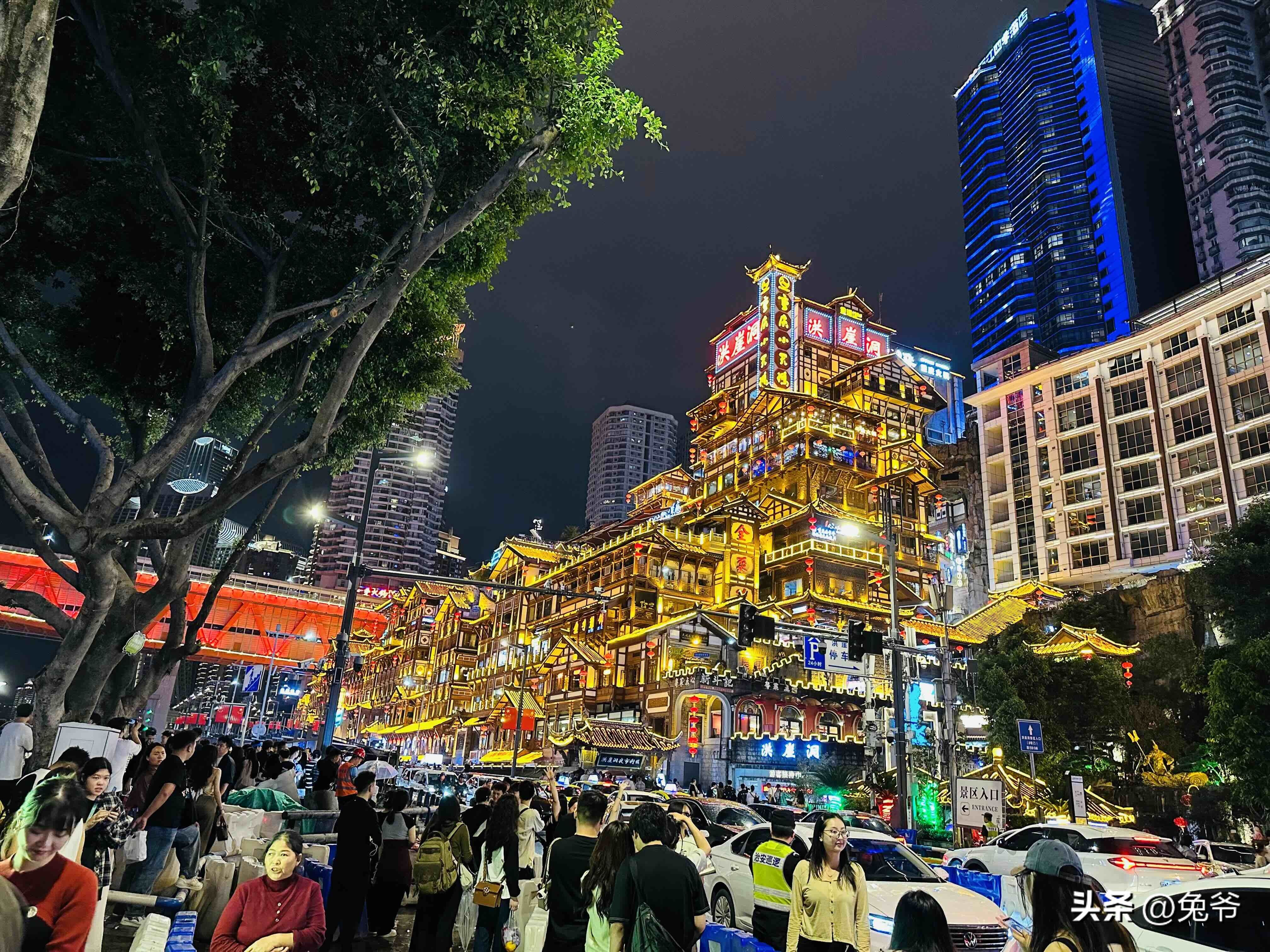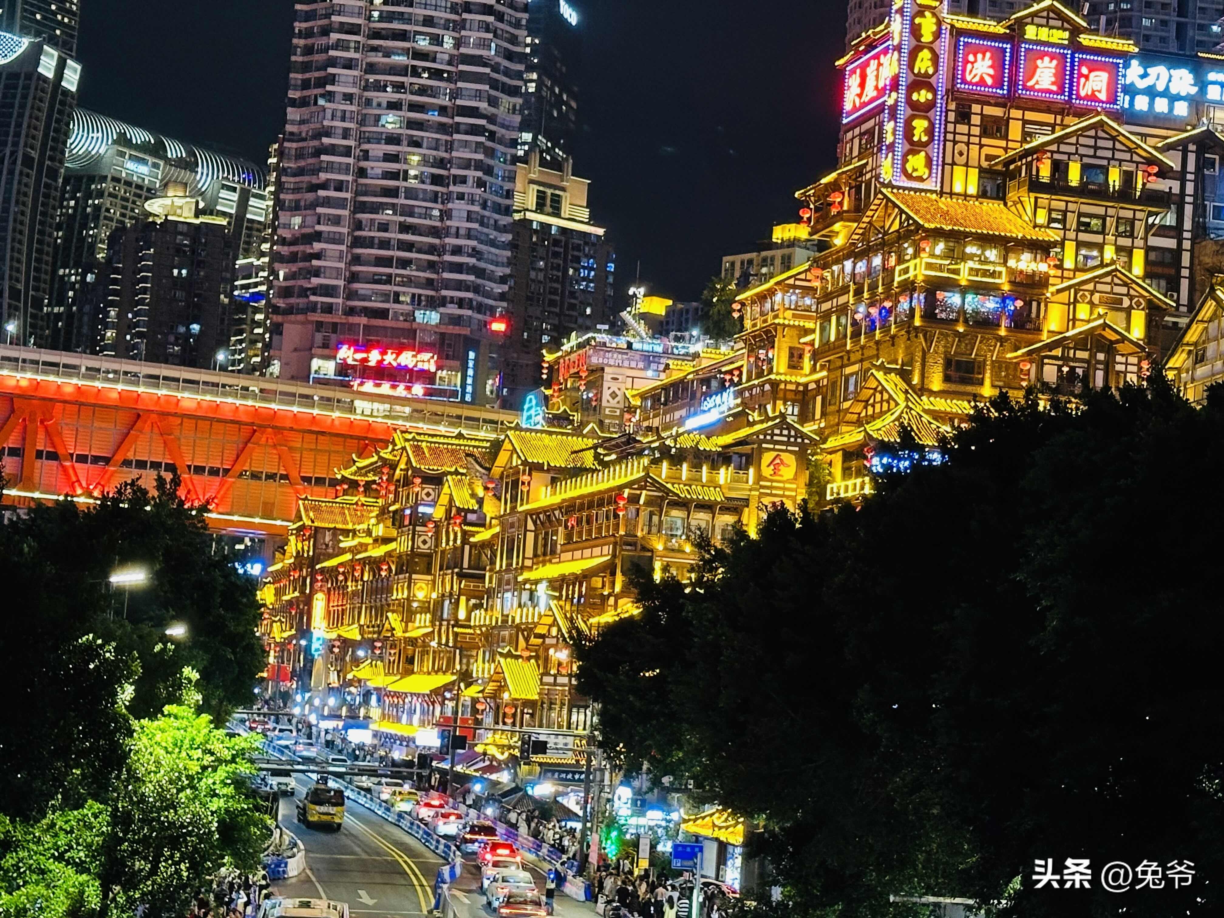 晚上去洪崖洞,现实版千与千寻,开灯后超美,提前找好拍照机位,千厮门大桥绝佳。