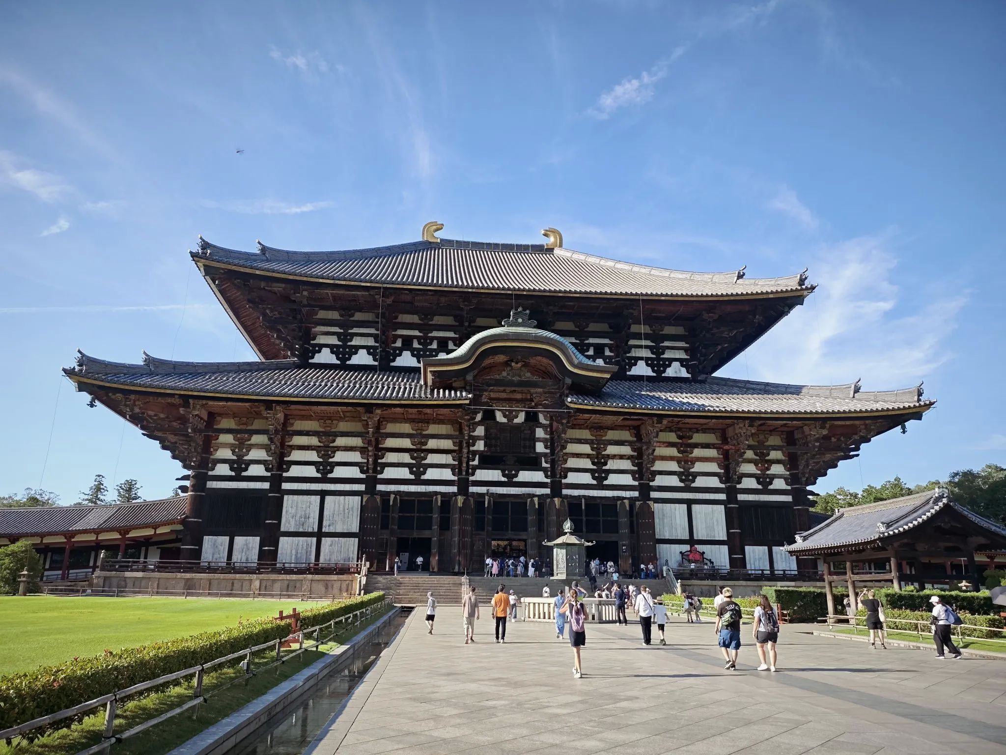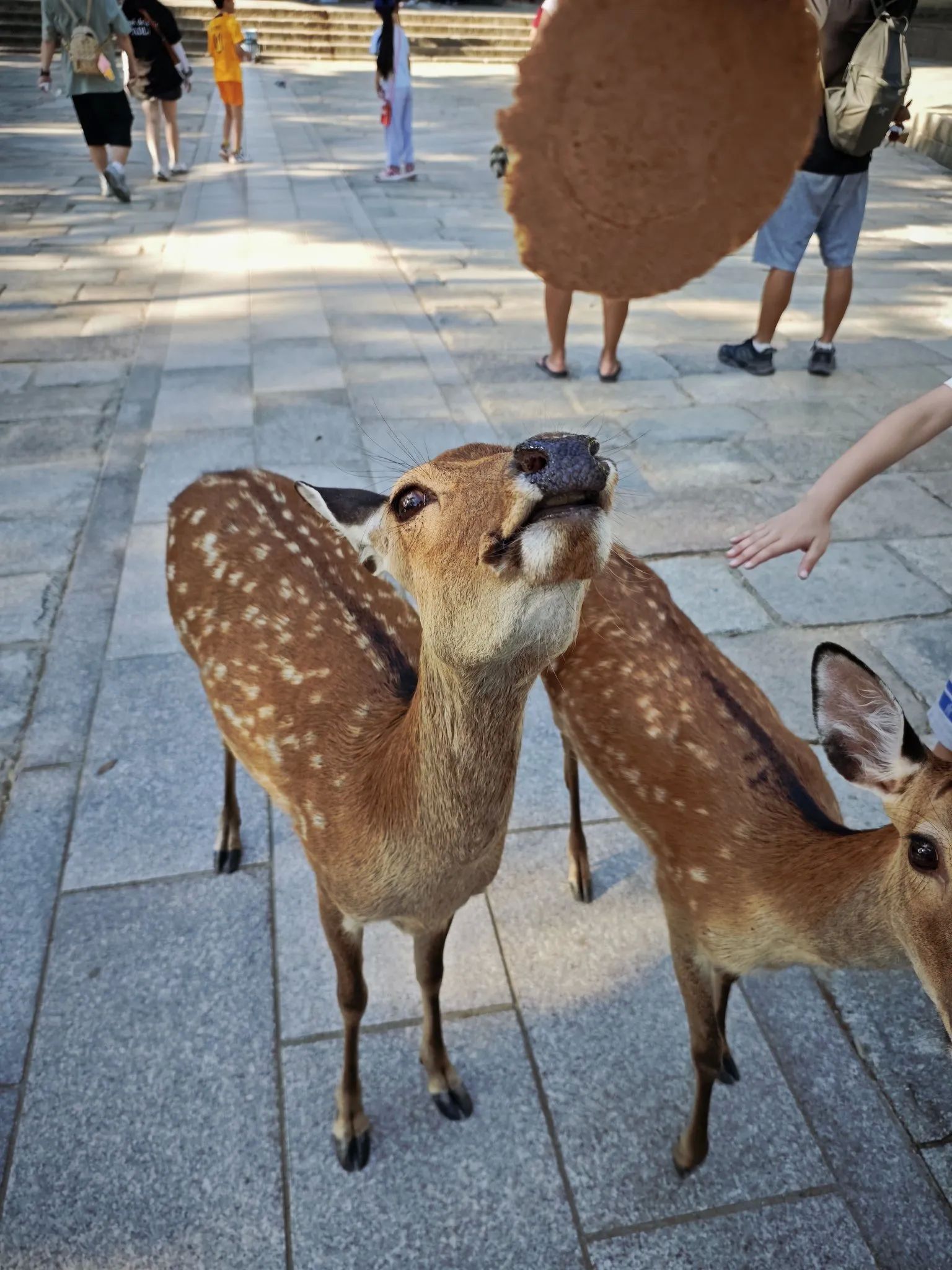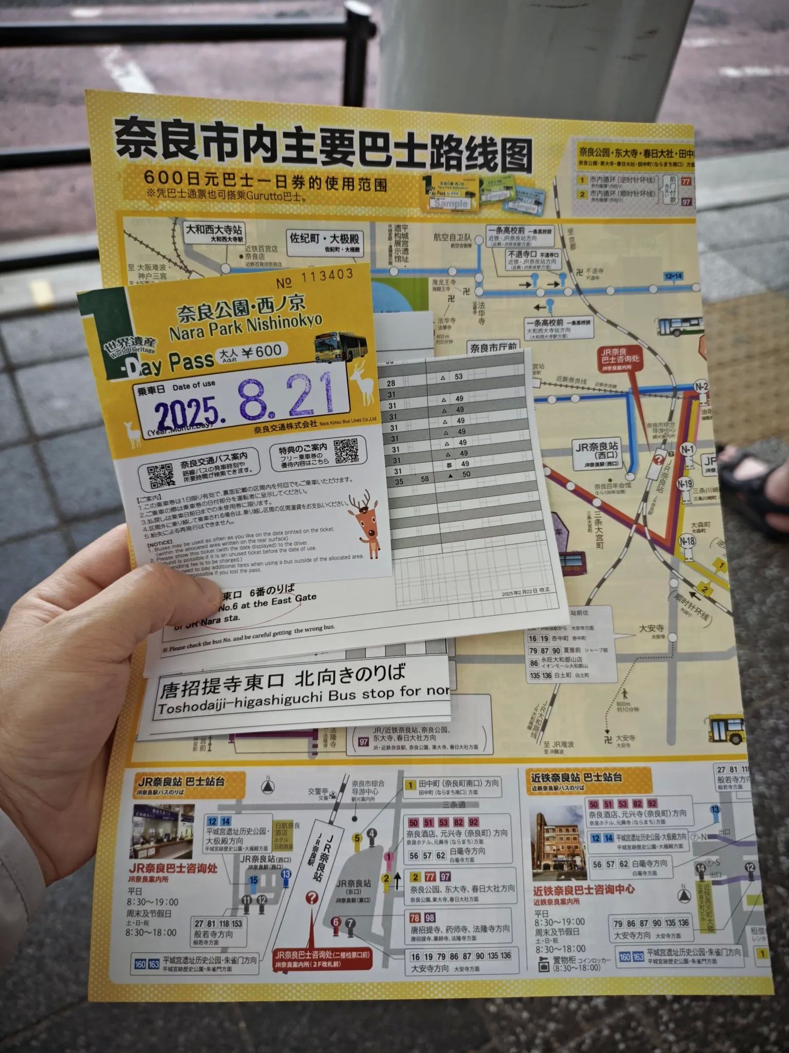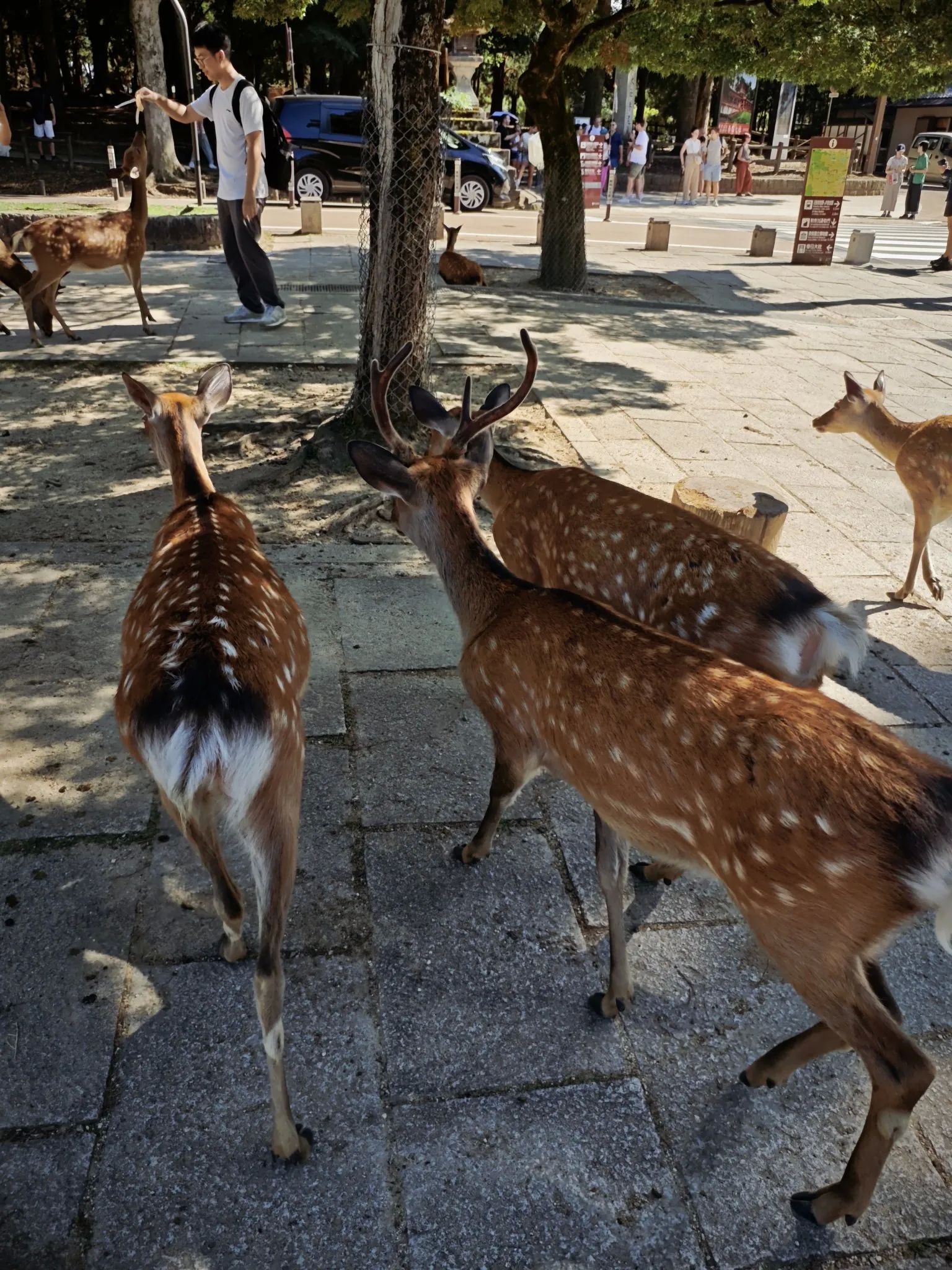 第三天的行程安排的是去奈良。经过前面2天的出行经验,我们觉得自己强大的可怕了,出行so easy。还是到新大阪坐JR线去的奈良,到久宝寺换乘,到王寺再换乘,就到奈良了,其实大阪环线也是非常方便的,我们回来就是坐大阪环线回来的。服务台有个小姐姐讲中文,建议我们先玩唐招提寺和药师寺,然后再去奈良公园,那边景点集中,而且吃饭地方多。买了一日公交,600元,不限次数。坐78路。唐招提寺很不错,鉴真东渡后带领众人造的,听说是唐朝的建筑?确实维护的非常好。我们没去药师寺,那边有个换乘公交,我们不懂,就华丽丽的错过了,坐到了很偏远的乡下,等了很久,才坐77路返回并且到达奈良公园,耽误了很长时间。奈良公园的小鹿是真的多,而且有点粗暴,当然只是针对手上有鹿饼的游客,会追着你要吃的,不给就顶你屁股[捂脸]。奈良公元的小鹿会作揖,也是真的。公鹿长着长长的角,看着挺慌的,小鹿萌萌哒就非常可爱。鹿饼200元一份,有5块小薄饼,好不经吃!而且那边的店面基本只收现金,备点现金很重要,当然交通卡也是好用的。喂完小路,往里走就是东大寺了,主要是看大殿,一个巨大无比的大殿,里面有个巨大的佛像。我们出来的时候发现路边的商店都开始打烊了,这才5点啊。回程的游客非常多,所以去奈良还是要早上早点去。其他的景点也没时间看了。返程回大阪。#大阪奈良旅游#