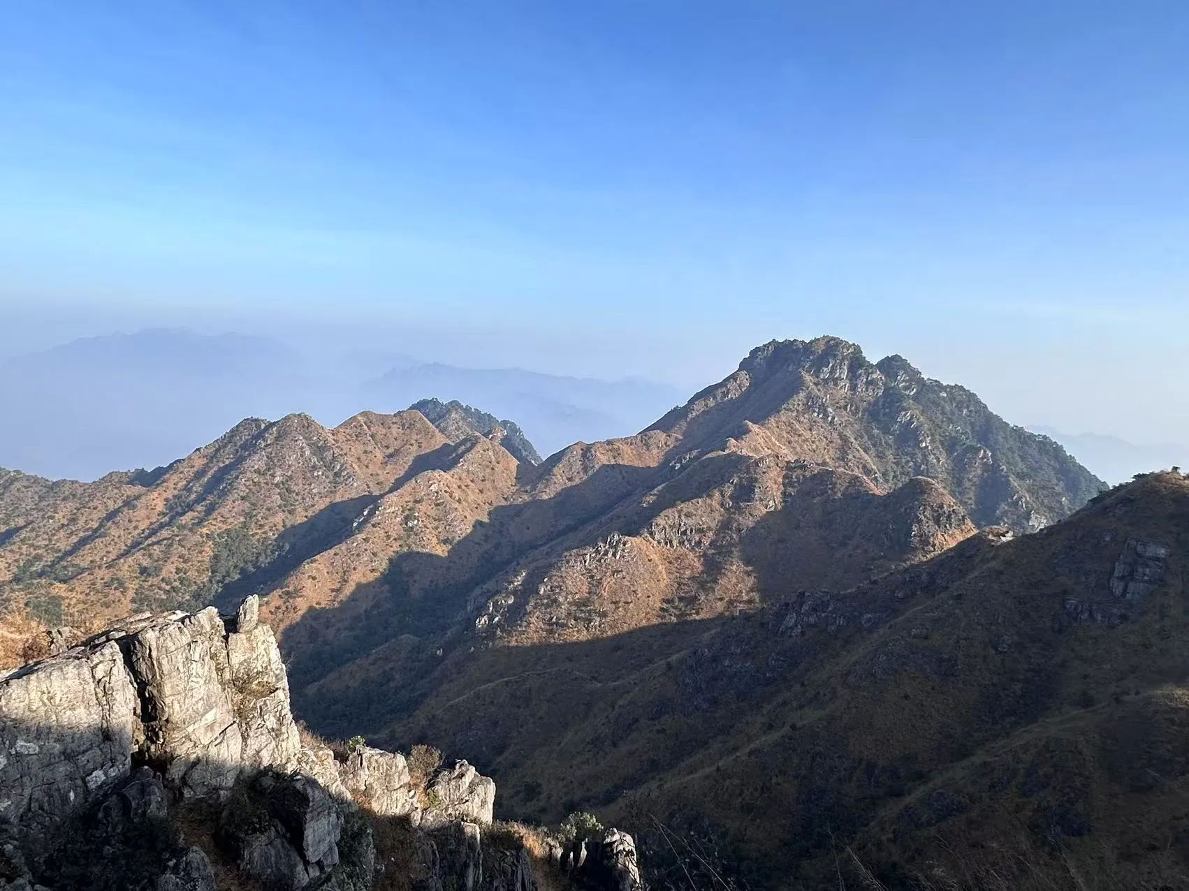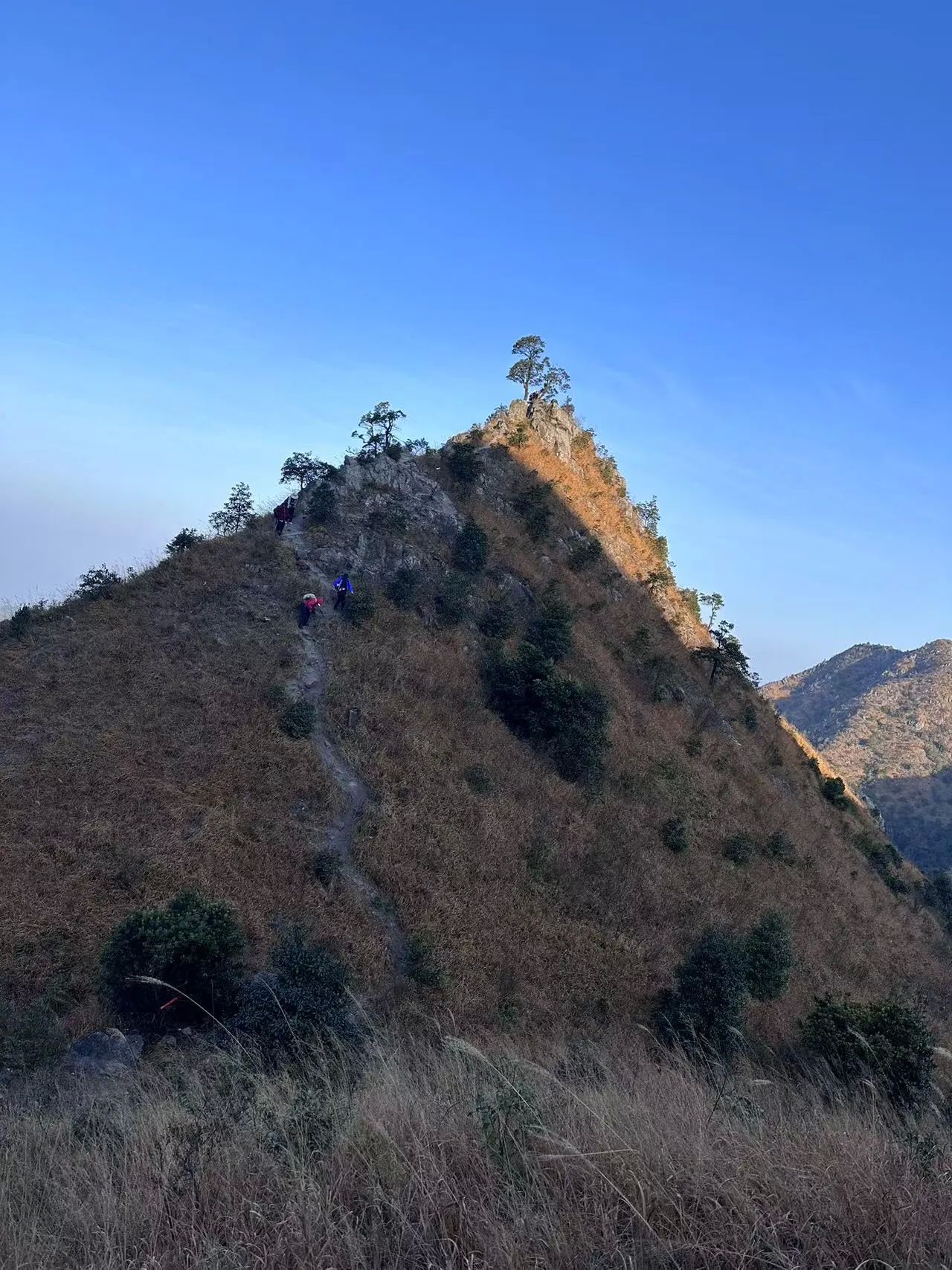3. **山脊漫步**:登顶后沿狭窄山脊线行走,两侧深渊令人目眩,却可360°俯瞰乳源大峡谷与远山如黛。