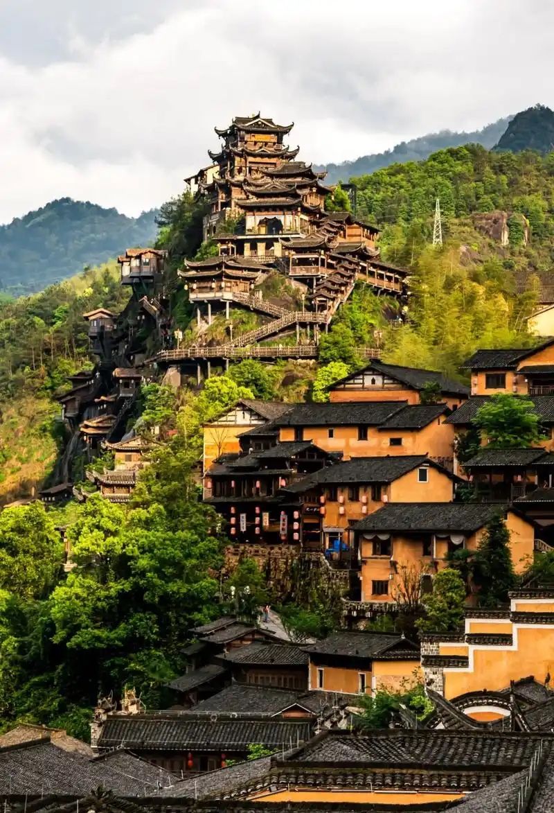 白昼漫步悬空栈道,看瀑布飞泻,逛夯土民居,体验传统作坊(酿酒、榨油)。