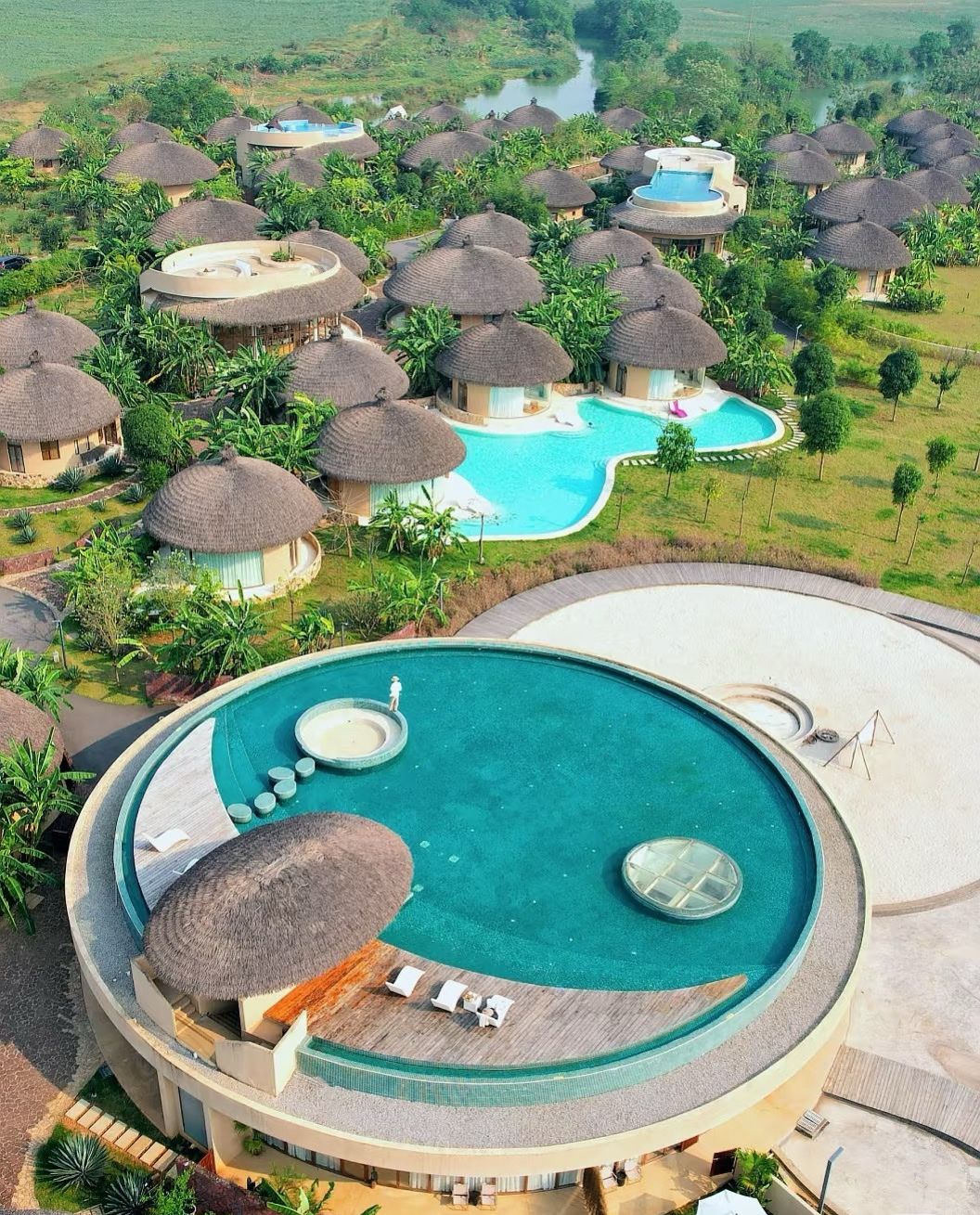 入住#在野宿集,院子里种满了芭蕉树,还有个超大泳池,随便一拍都特别好看!
