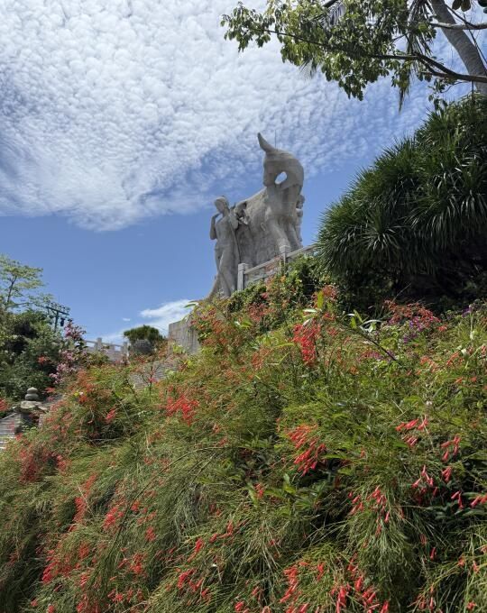 鹿雕广场:景区标志性白色鹿雕,搭配270°观海平台,下午4点拍逆光发丝照超美。