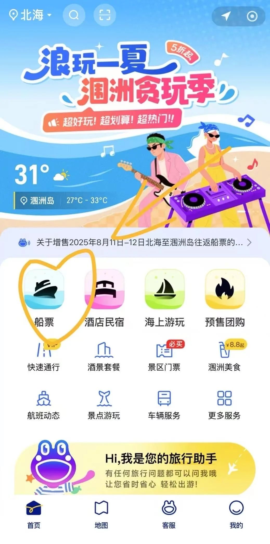 涠洲岛门票船票提前在“嗯噢哇”小cx购买!省去现场排队
