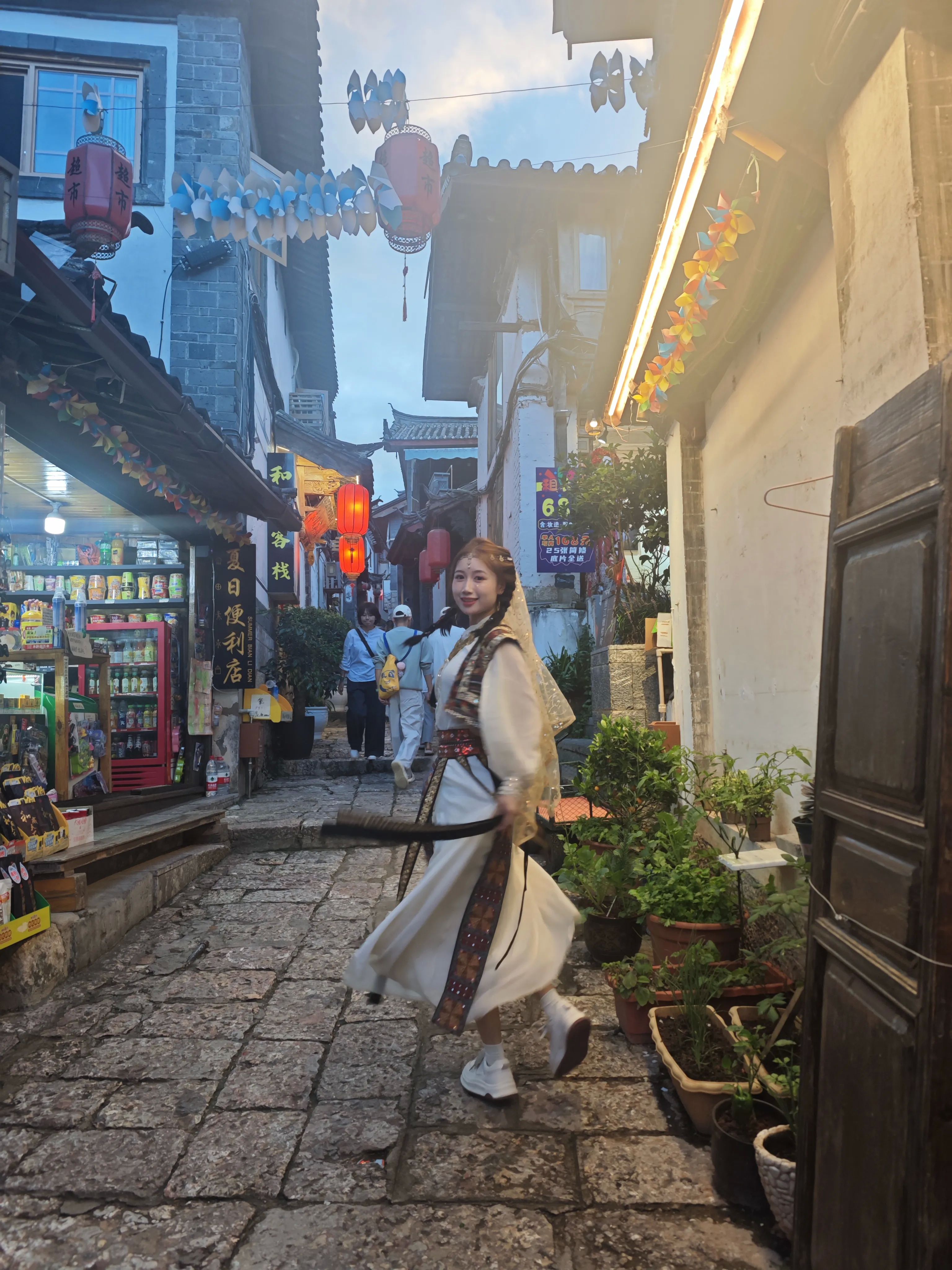 半个小时左右拍完照,回照相馆选完需要精修的照片,女儿又换了一套不知是白族还是藏族的衣服,接着游览古城。