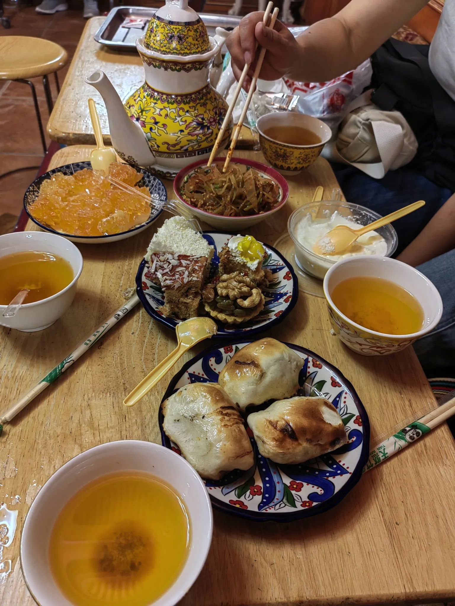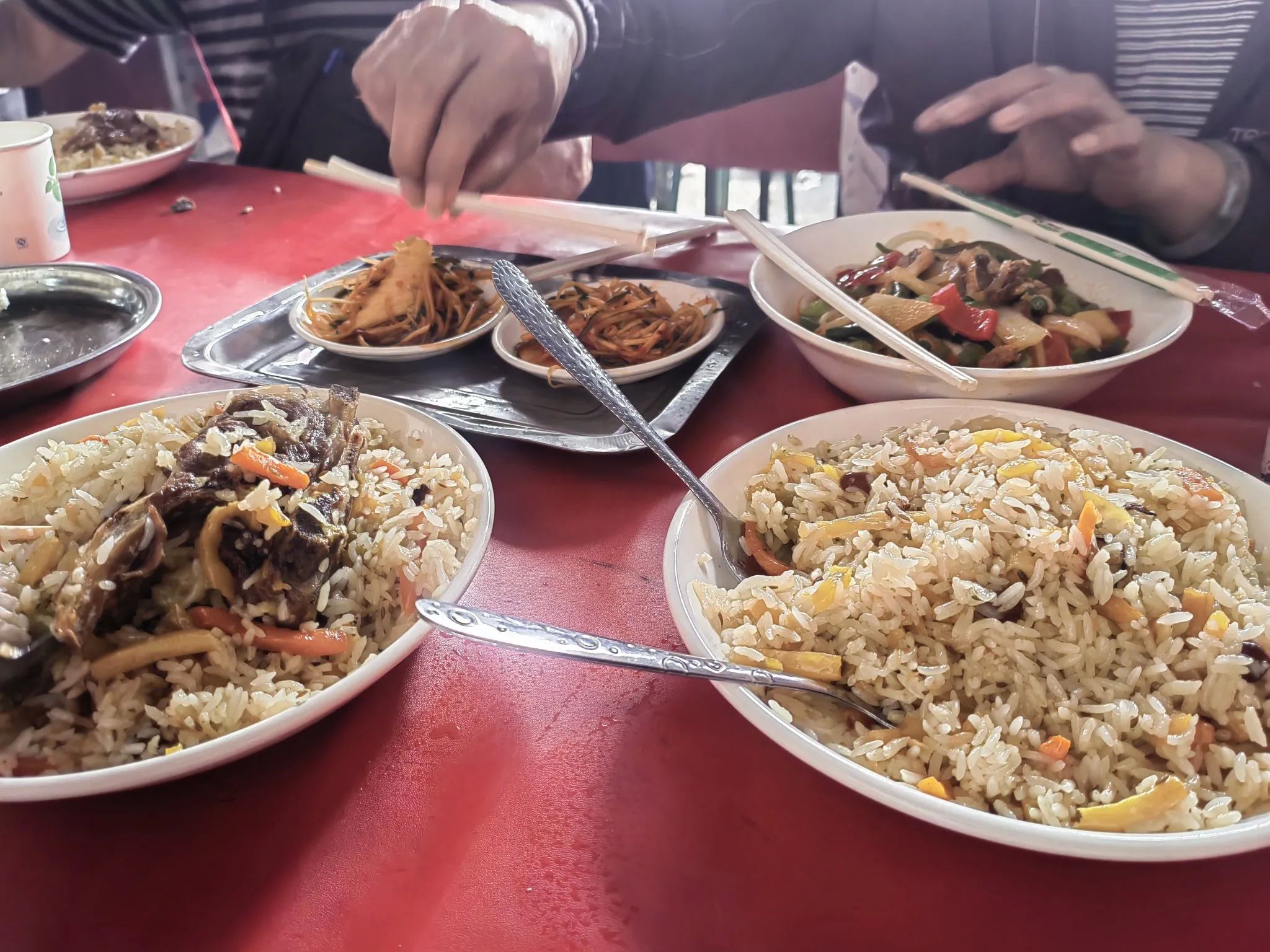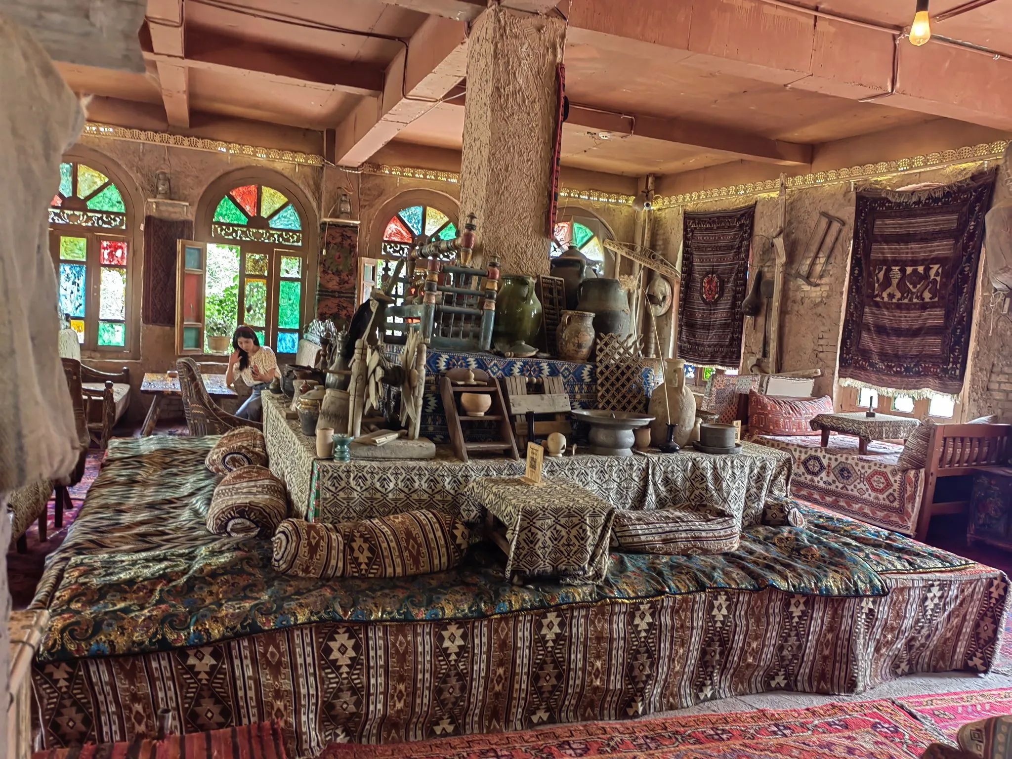 游客慕名而来,在欣赏古城独特民居、街巷的同时,可尽情游逛极富民族特色的玉石巴扎、铜器巴扎、帽子巴扎、陶器巴扎,以及艾德莱斯丝绸、烙铁烫画等各类店铺,体验手工制作乐器全过程,还有美食巴扎,品尝地道的新疆羊肉串、烤包子、羊肉抓饭。逛累了,就走进百年老茶馆里歇歇脚,喝一杯当地特色茶饮,配以酥软甜蜜的茶点,享受难得休闲时光。巴扎夜市到处是人声鼎沸,弥漫着香料、刚出炉的面包和烤肉的香气。我们还去了极具地方特色的牛羊交易市场,摸羊屁股,吃了原汁原味的烤羊肉串,深切感受到肉比蔬菜便宜,牛羊肉大快朵颐的体验。