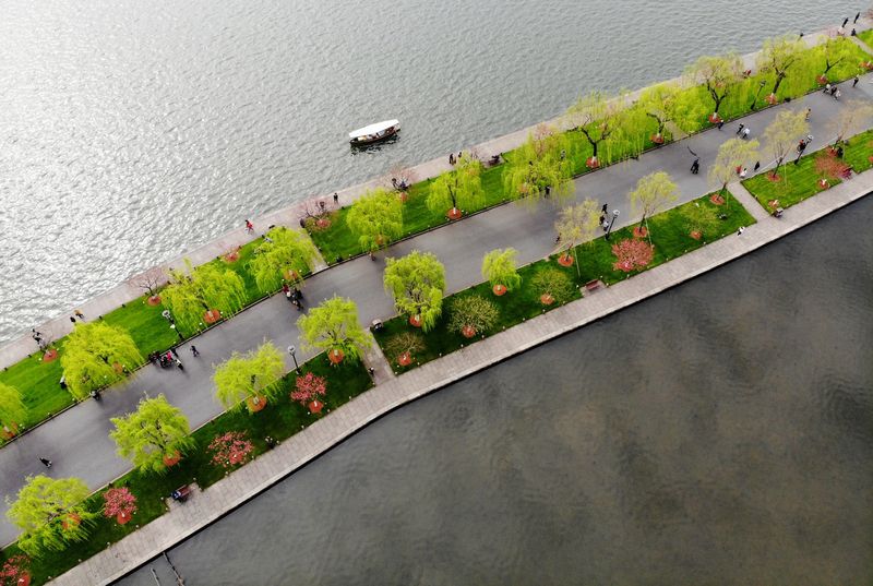 而永州冷水滩的珊瑚公园,也是春日宝藏地。微风拂过湖面,沙梨林里素白梨花摇曳,路边山樱粉红似霞、洁白如玉。人们在花海边散步、闲坐,享受暖阳。在这花海人潮中,自然之美尽显,让人沉醉其中,幸福感满满。别忘了爱护环境,让这份美丽延续。 其实,像这样的春日美景在很多地方都能找到。就拿杭州的西湖来说,春日的西湖宛如一幅天然的水墨画卷。湖畔垂柳依依,嫩绿的柳枝轻拂着湖面,仿佛是大自然用温柔的笔触在描绘着春的轮廓。桃花盛放在岸边,那一抹抹娇艳的红与湖水的碧绿相互映衬,美得让人移不开眼。