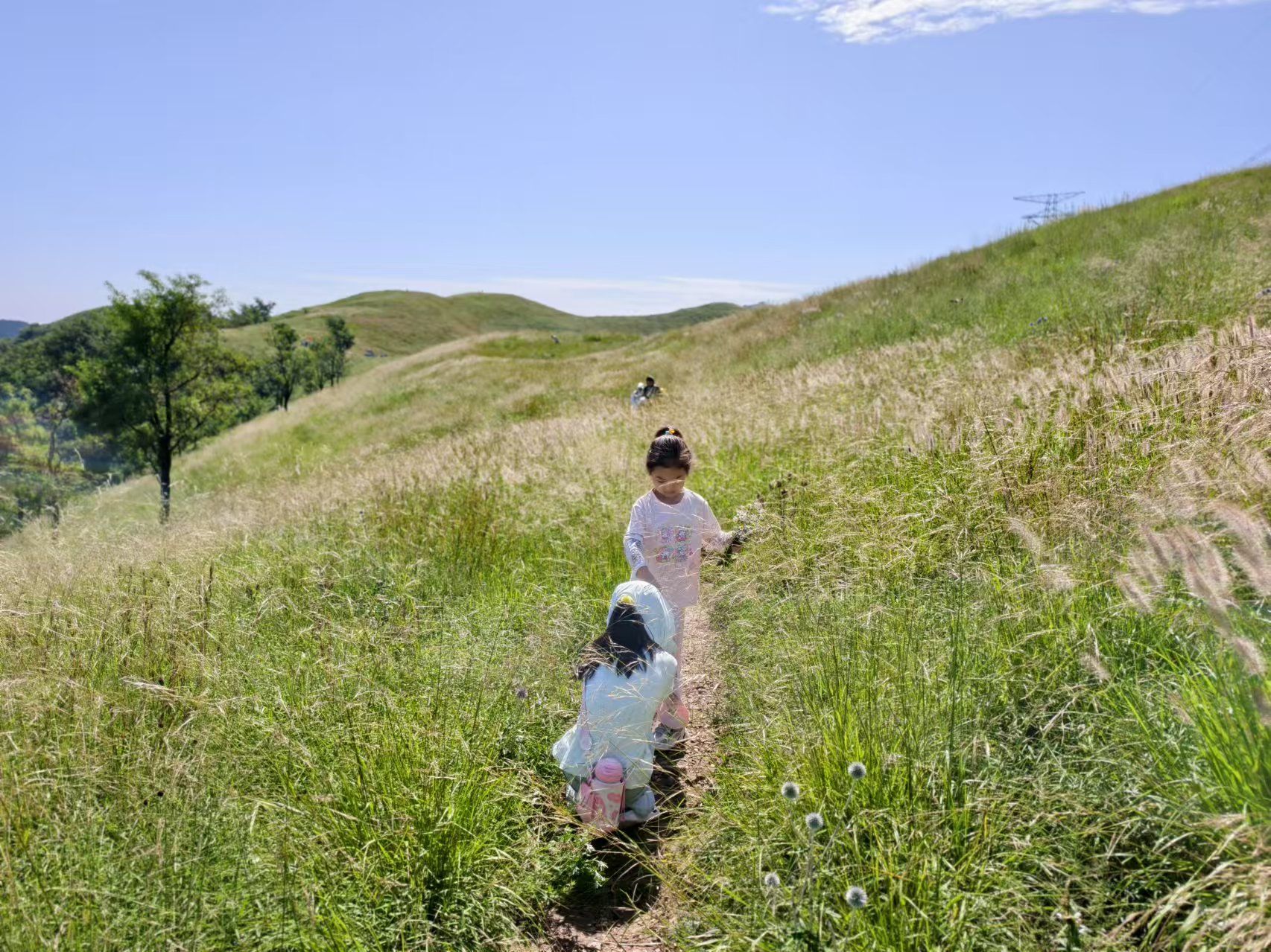 沿着村子的主干道上行,再顺着上山的小路爬个坡,路两边都是很高的野草和荆棘,所以最好穿长裤和登山鞋,大约走半个多小时,就到了第一个山顶,眼前便豁然开朗了,连绵几个山头高低起伏,全部是厚厚的绿色草甸,站在山顶上,心境一下子开阔起来。吹着山顶旷野的风,看看漫山遍野的小野花,油然生出一种舒爽惬意的感觉来。