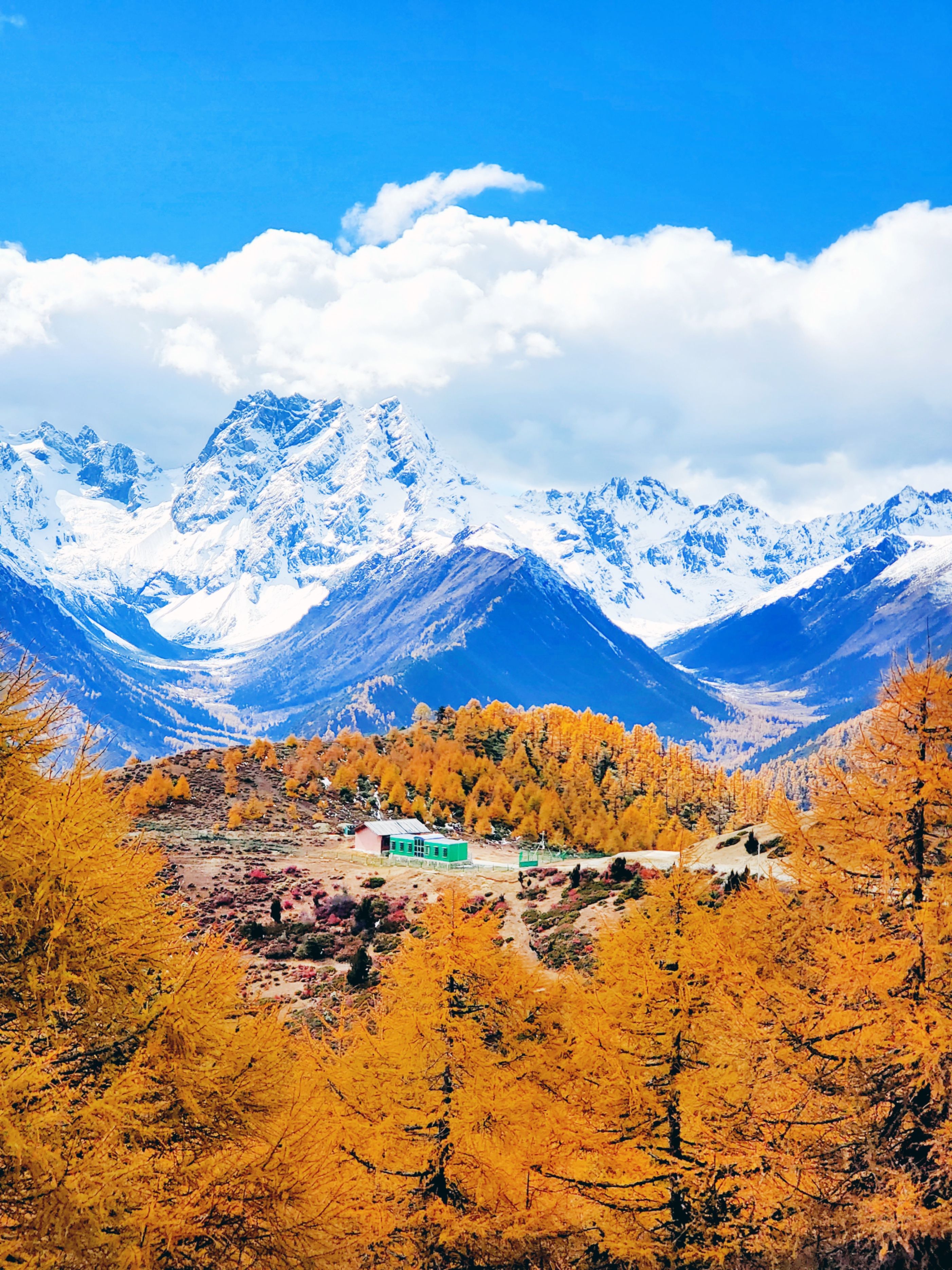 横断山脉被誉为“地理教科书”,从海拔500米到海拔7556米,覆盖了从盆地到高原极地的所有景观、气候特征,有着“一天经四季、十里不同天”的独特体验。每逢深秋,各大杉林黄尽,璀璨的金色森林,飒爽地沿着山坡绵延跌宕,雪峰峭壁,荧蓝海子,它们令人如坠梦里。