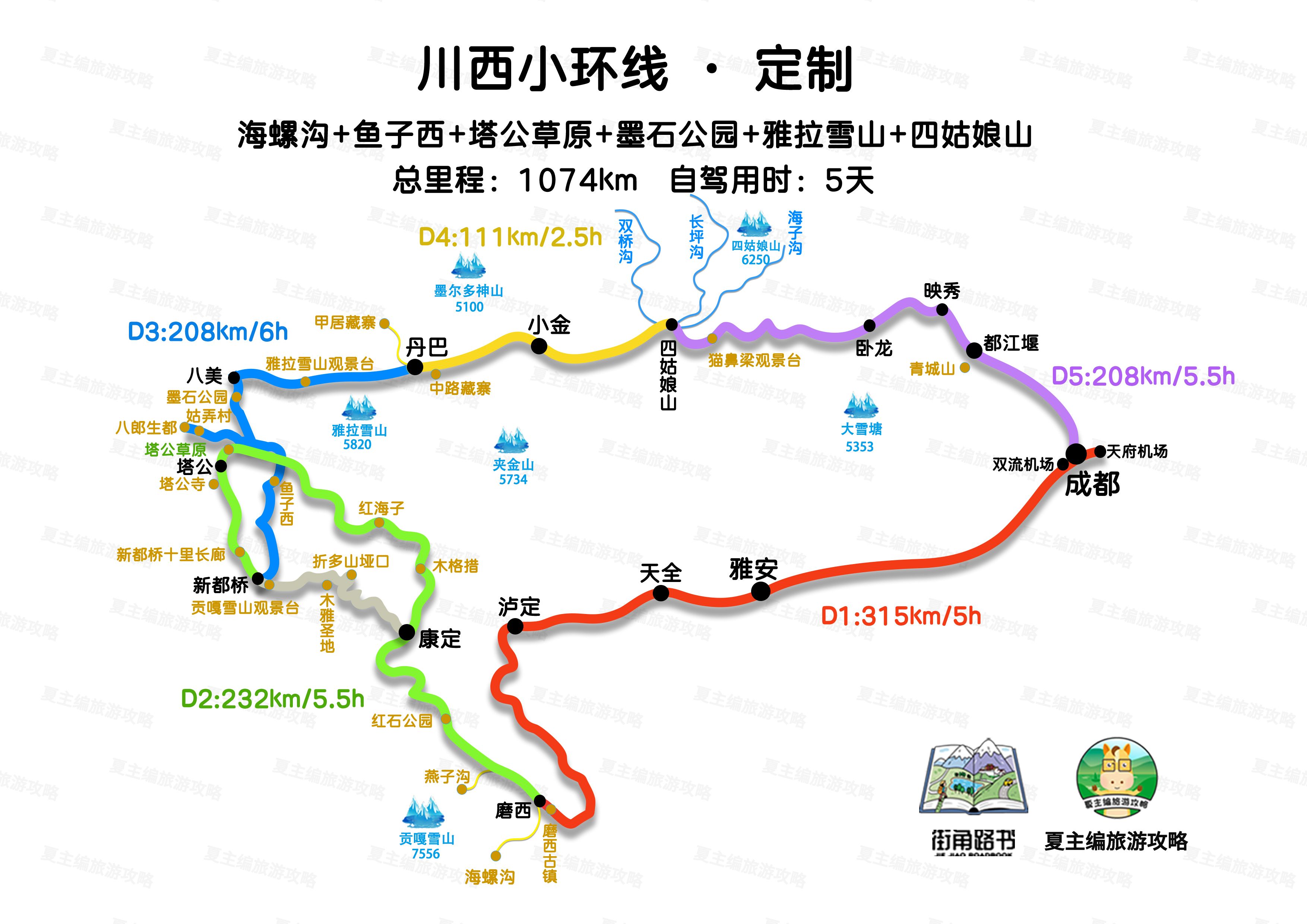 景观大道:318川藏南线、317川藏北线、350熊猫大道、甘白路、理小路、甘南小独库、洛克之路、格聂南线、丹道环线。