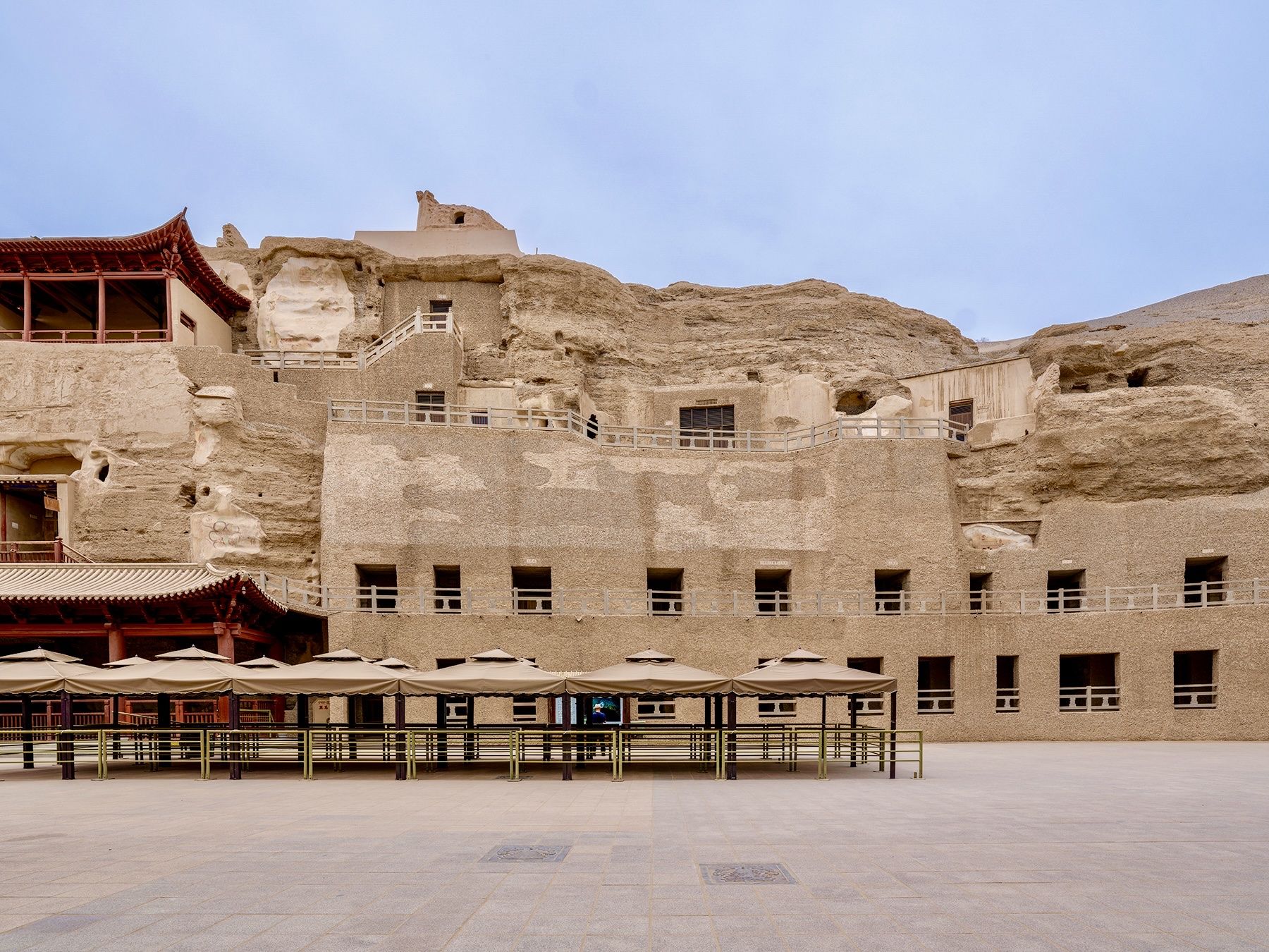 敦煌悠久的历史,相比于山西古建,并没有给我留下深刻印象。上午随乡随俗去了大名鼎鼎的“莫高窟”,景区入口场面宏大,停车场巨大。门票种类繁多,一种不知所意的“应急票”,一问除非你网上预约了常规参观(8个洞窟),没预约的均划为“应急票”(减为4个洞窟,当然价也減半)。敦煌莫高窟现存洞窟几百个,开凿于公元4世纪至14世纪(十六国时期至元代),延续约1000年。目前景区只对普通游客开放4个洞窟(预约的开放8个洞窟,当然8个除外还有特窟需预约)。