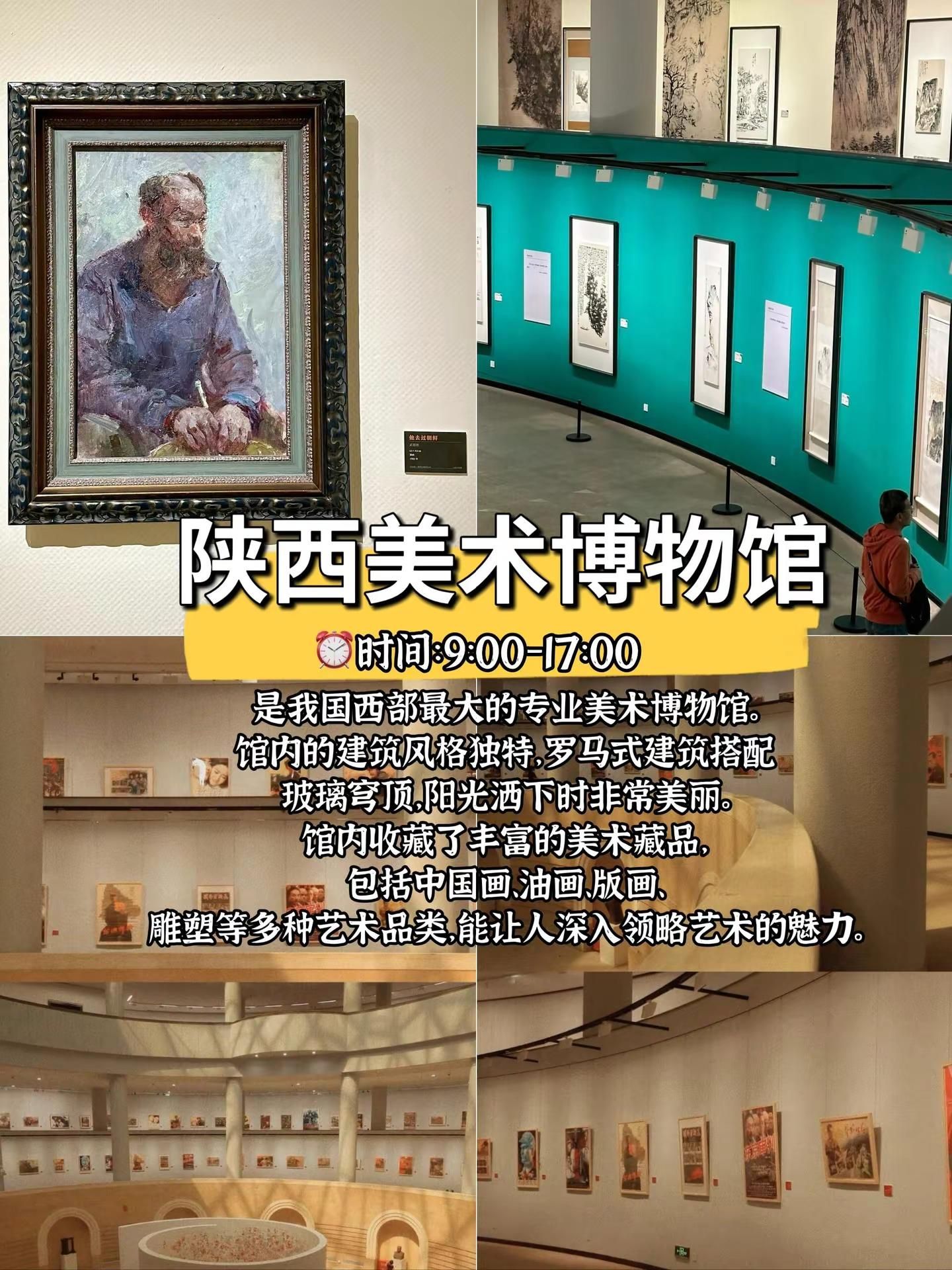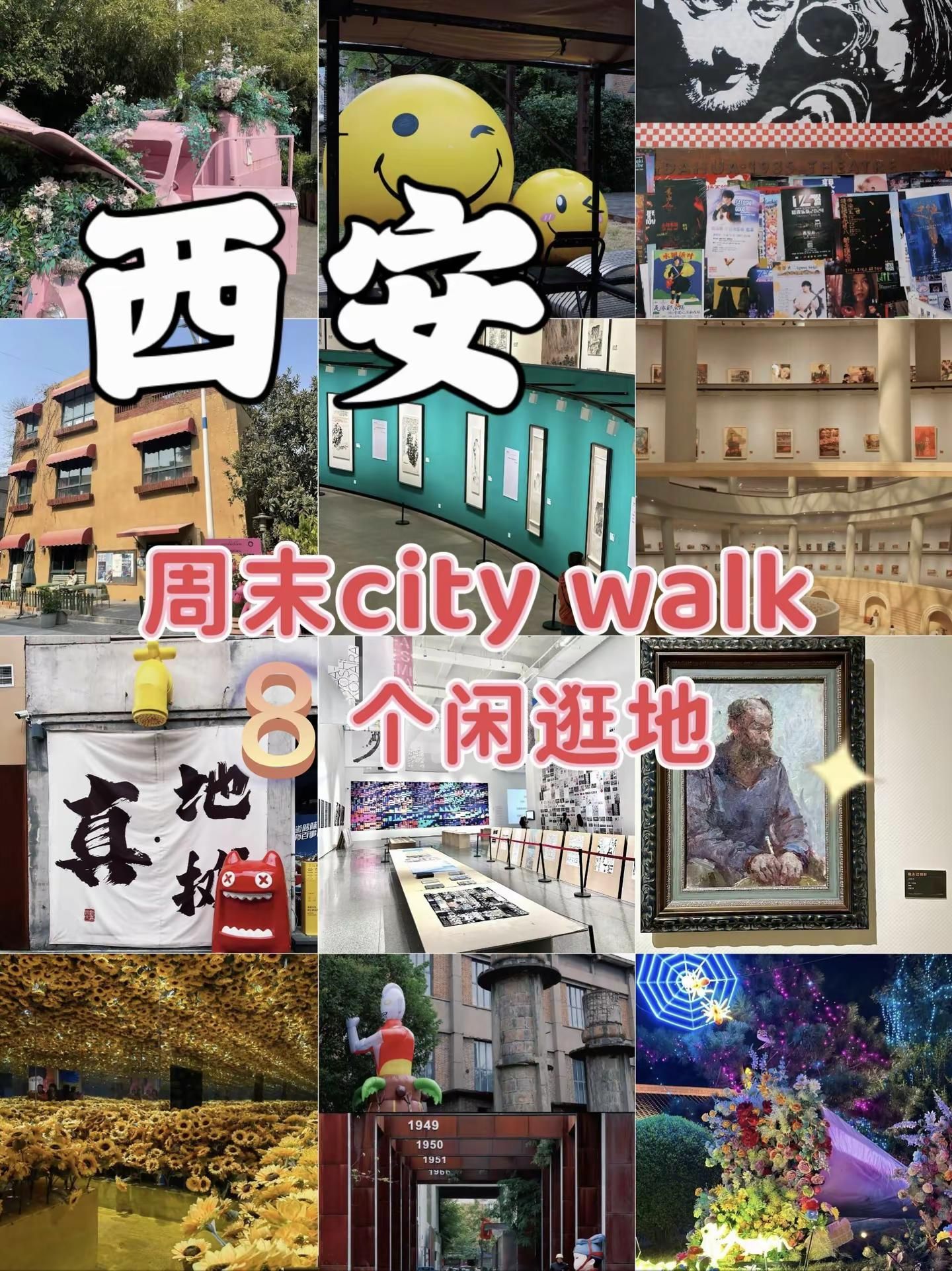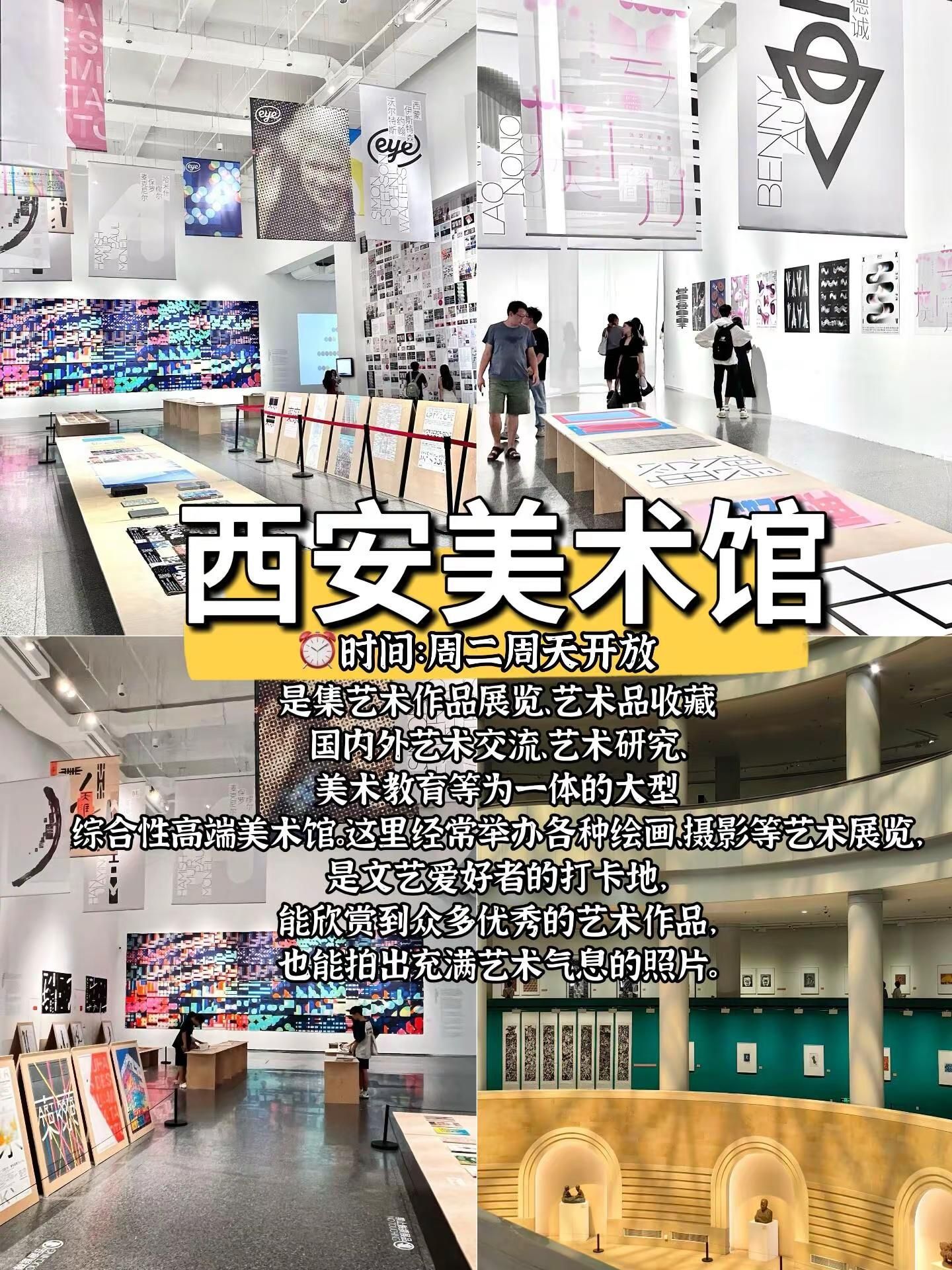 西安8个周末闲逛好玩地拒绝人挤人。半坡国际艺术区:位置:西安市灞桥区纺织城西街238号。时间:全年全天开放。交通:地铁1号线半坡站C口出南行200余米可达;也可乘坐公交241路、913路、105路、511路、11路等。特点:艺术区内有复古火车头、墙壁上各式各样的涂鸦、见证中国近代纺织工业的织布机等,充满了时代印记与现代艺术的碰撞,非常适合拍摄工业风、文艺风的照片。西安美术馆:位置:位于曲江新区大唐不夜城附近。时间:不同展览的开放时间可能会有所不同,一般周一闭馆,周二至周日开放。交通:乘坐公交到附近站点,或者乘坐地铁4号线到大唐芙蓉园站等站点后步行前往。陕西美术博物馆:位置:陕西省西安市碑林区长安北路14号。时间:今日09:00-17:00开放(16:30停止入园),每周一闭馆(法定节假日除外)。交通:紧邻陕西图书馆和陕西体育场,交通便利,可乘坐地铁、公交等到达。大华·1935:位置:西安市新城区太华南路251号。时间:09:00-22:00。交通:乘坐地铁4号线到含元殿站,B出口步行2分钟;也可乘坐公交2路、16路、17路、22路、38路等。西安梵高星空艺术馆:位置:陕西省西安市莲湖区回民街回坊里商业街2楼。时间:10:00-23:00(全年无休)。交通:位于回民街附近,交通便利,可乘坐公交、地铁到达后步行前往。 OCAT西安馆:位置:位于沣河东路西咸沣东文化中心。时间:具体展览时间根据不同展览而定。交通:可根据导航前往,周边有停车场等交通设施。老钢厂创意产业园:位置:西安市新城区幸福南路建筑科技大学华清学院内。时间:全天开放。交通:乘坐19路、700路、8路等公交可达。诗经里:位置:西安市长安区沣东新城沣河东路818号。时间:周一至周五10:00-19:30,周六周日、法定假日10:00-20:00。交通:可乘坐沣东通勤2号线,在沣河景区(公交站)下。#西安 #西安旅行攻略 #拍照圣地 #休闲好去处