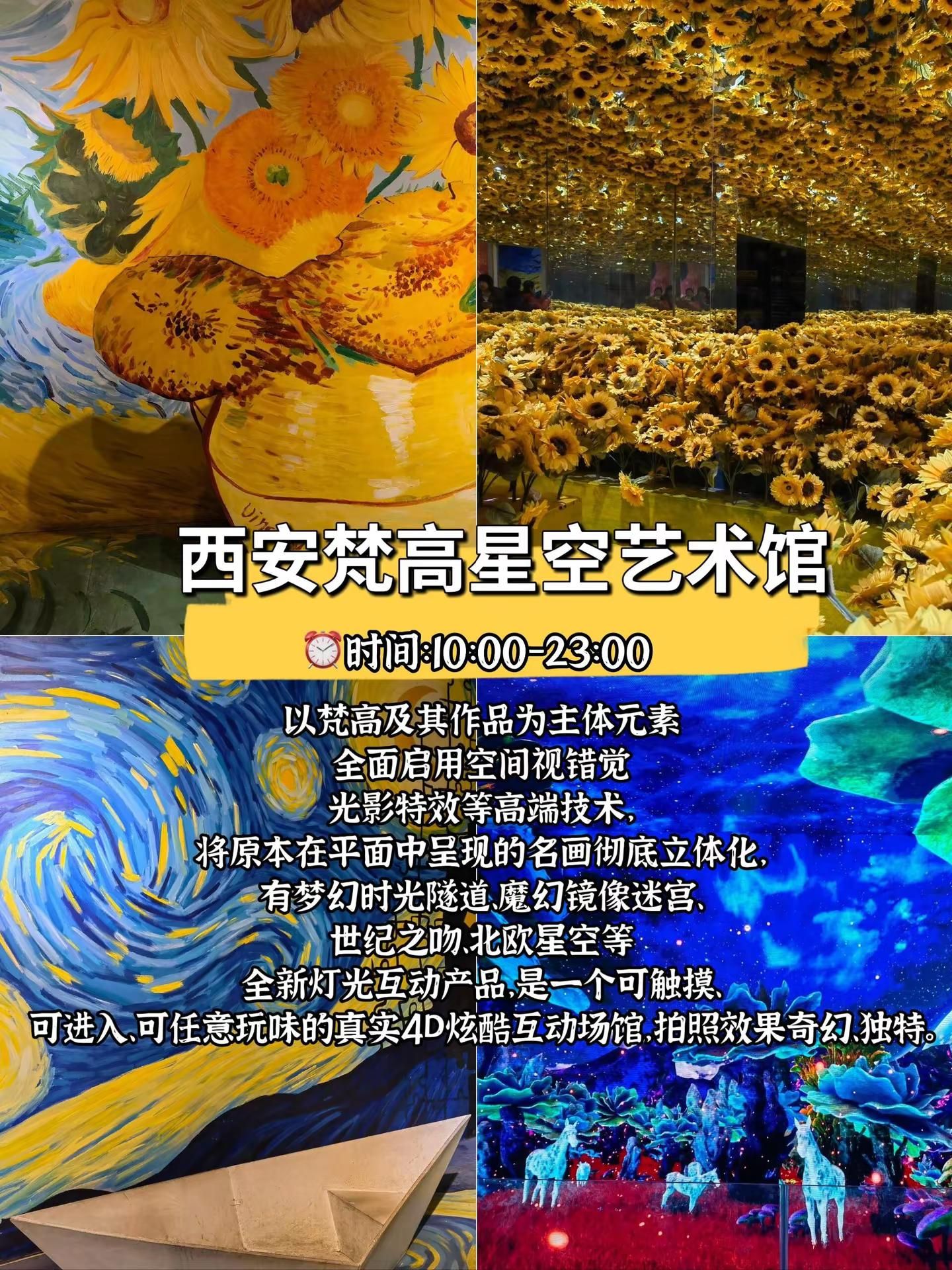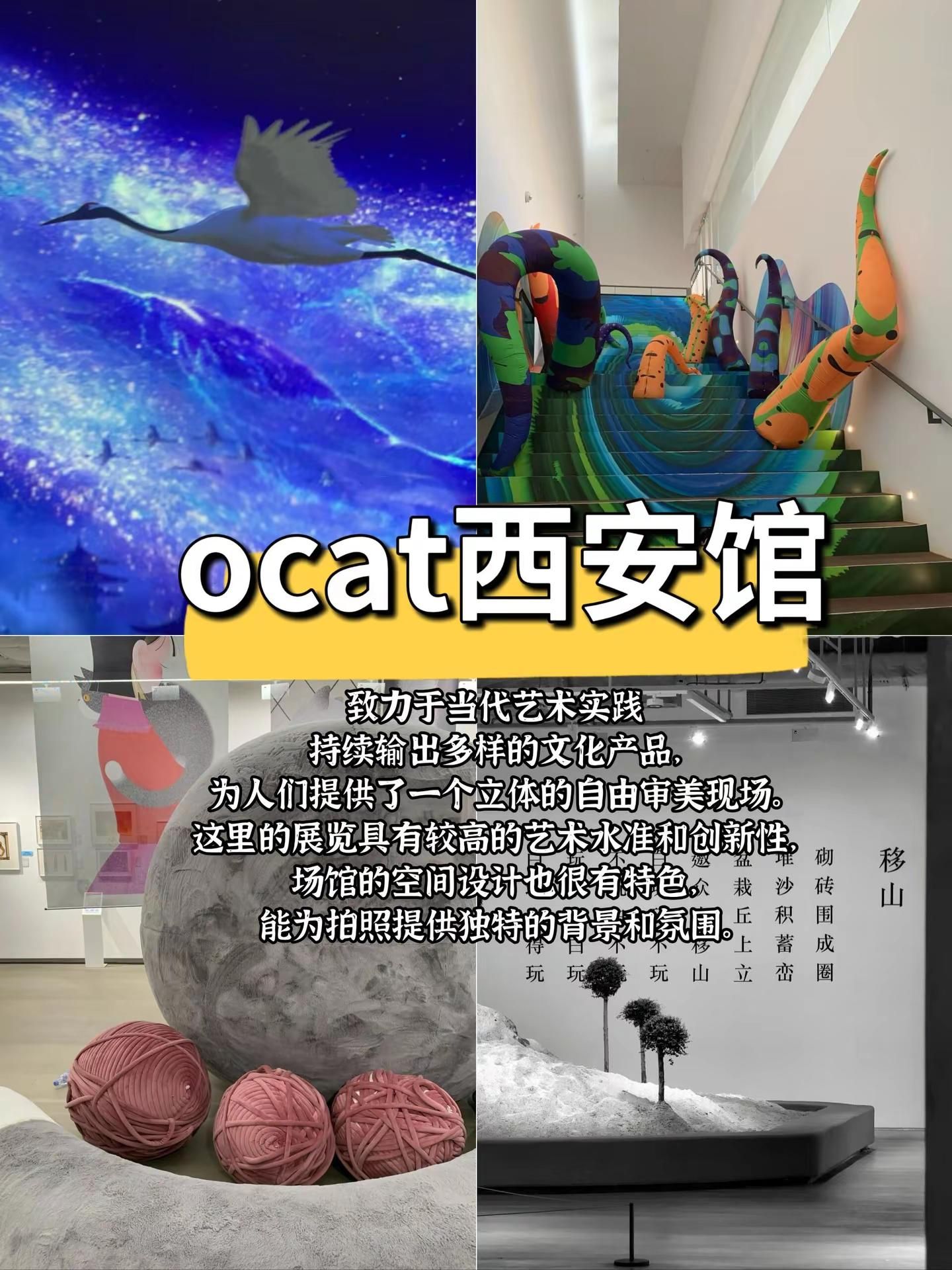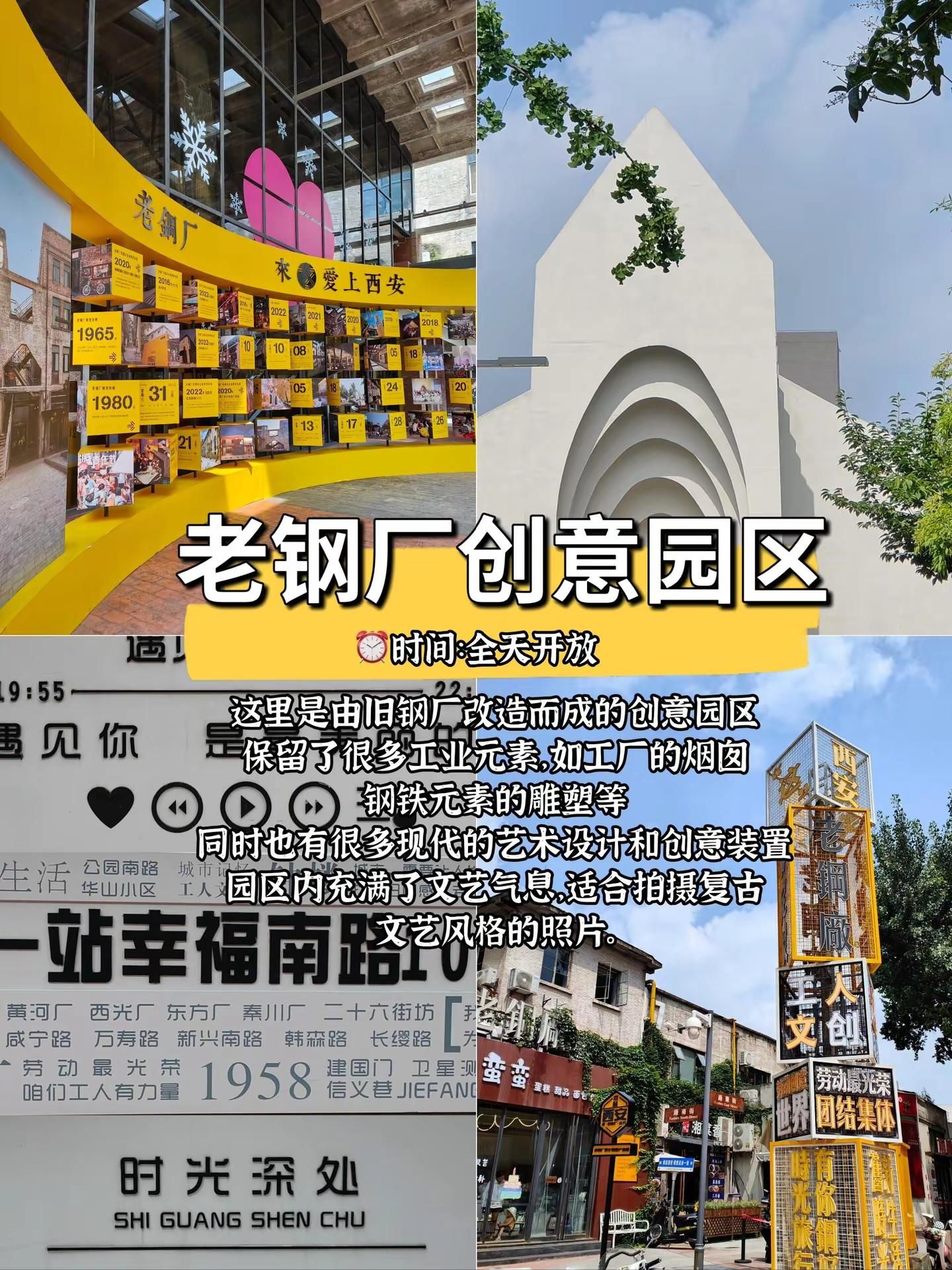 西安8个周末闲逛好玩地拒绝人挤人。半坡国际艺术区:位置:西安市灞桥区纺织城西街238号。时间:全年全天开放。交通:地铁1号线半坡站C口出南行200余米可达;也可乘坐公交241路、913路、105路、511路、11路等。特点:艺术区内有复古火车头、墙壁上各式各样的涂鸦、见证中国近代纺织工业的织布机等,充满了时代印记与现代艺术的碰撞,非常适合拍摄工业风、文艺风的照片。西安美术馆:位置:位于曲江新区大唐不夜城附近。时间:不同展览的开放时间可能会有所不同,一般周一闭馆,周二至周日开放。交通:乘坐公交到附近站点,或者乘坐地铁4号线到大唐芙蓉园站等站点后步行前往。陕西美术博物馆:位置:陕西省西安市碑林区长安北路14号。时间:今日09:00-17:00开放(16:30停止入园),每周一闭馆(法定节假日除外)。交通:紧邻陕西图书馆和陕西体育场,交通便利,可乘坐地铁、公交等到达。大华·1935:位置:西安市新城区太华南路251号。时间:09:00-22:00。交通:乘坐地铁4号线到含元殿站,B出口步行2分钟;也可乘坐公交2路、16路、17路、22路、38路等。西安梵高星空艺术馆:位置:陕西省西安市莲湖区回民街回坊里商业街2楼。时间:10:00-23:00(全年无休)。交通:位于回民街附近,交通便利,可乘坐公交、地铁到达后步行前往。 OCAT西安馆:位置:位于沣河东路西咸沣东文化中心。时间:具体展览时间根据不同展览而定。交通:可根据导航前往,周边有停车场等交通设施。老钢厂创意产业园:位置:西安市新城区幸福南路建筑科技大学华清学院内。时间:全天开放。交通:乘坐19路、700路、8路等公交可达。诗经里:位置:西安市长安区沣东新城沣河东路818号。时间:周一至周五10:00-19:30,周六周日、法定假日10:00-20:00。交通:可乘坐沣东通勤2号线,在沣河景区(公交站)下。#西安 #西安旅行攻略 #拍照圣地 #休闲好去处