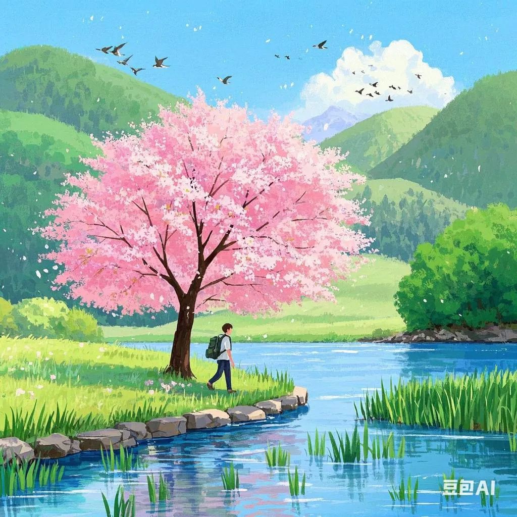 - **北京颐和园西堤**:山桃映湖面,适合划船野餐。