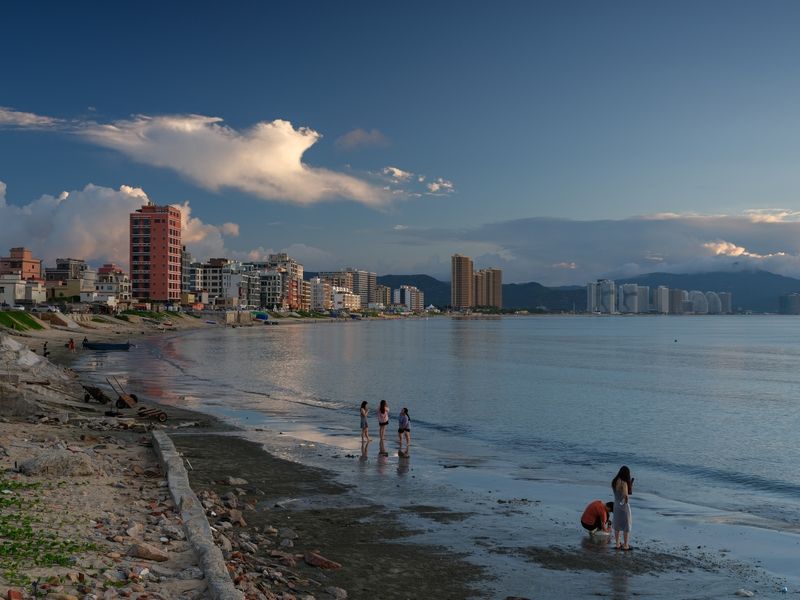 第二天,前往双月湾。可以选择包车或者打车过去,这样比较方便快捷。双月湾分为左右两湾,左湾水平如镜,右湾波涛汹涌,景色十分独特。你可以去海边漫步、踏浪,还能体验各种海上项目。中午在海边的海鲜餐厅用餐,一定要试试当地的海胆炒饭,味道超棒。游玩时要注意做好防晒措施,避免晒伤。