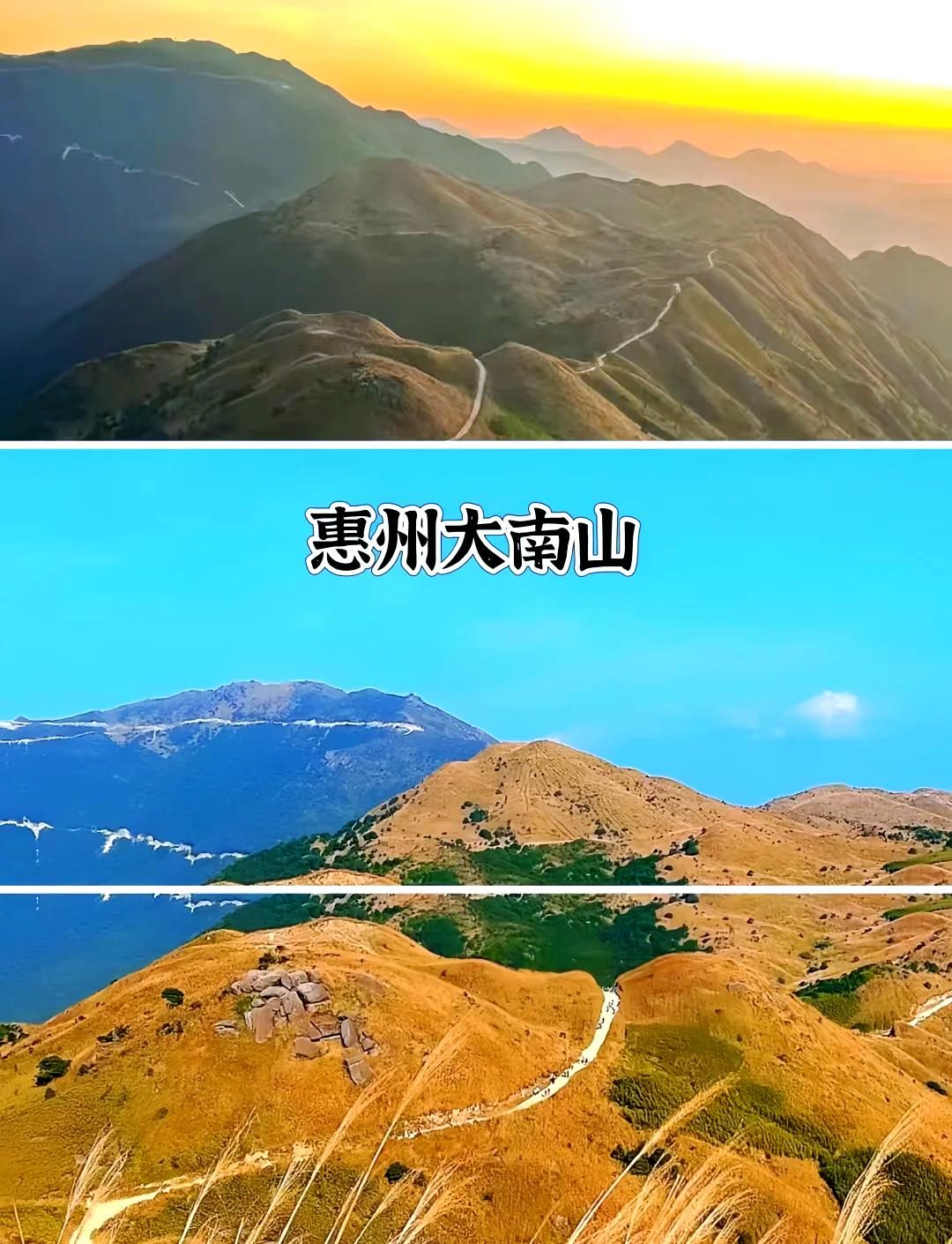 惠州大南山被称为广东版的武功山,秋冬季节满山芦苇荡和草甸,配上日落一片金黄,景色绝美。