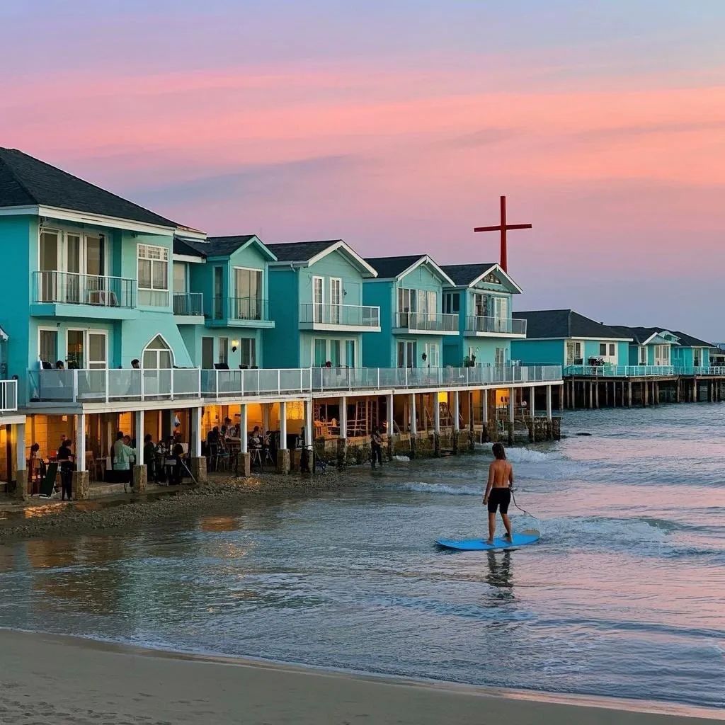 大鹏所城旁的这个渔村,藏着深圳最清新的海边乌托邦。薄荷蓝的民宿群倒映在潮间带,冲浪板划开晨雾,巷尾咖啡馆的手冲香气与海浪协奏。当暮色染红天空礼堂的十字架,沙滩音乐会已飘来《夏天的风》。