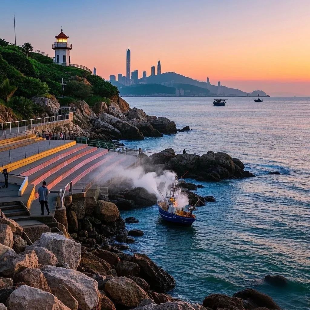 从沙头角到背仔角,这条世界最长海滨栈道是徒步者的天堂。大梅沙段彩虹阶梯与礁石相映成趣,背仔角灯塔在云雾中若隐若现。行至海鲜街段,刚靠岸的渔船正卸下透亮的鱿鱼,蒸汽海鲜的鲜甜混着浪涛声在舌尖绽放。