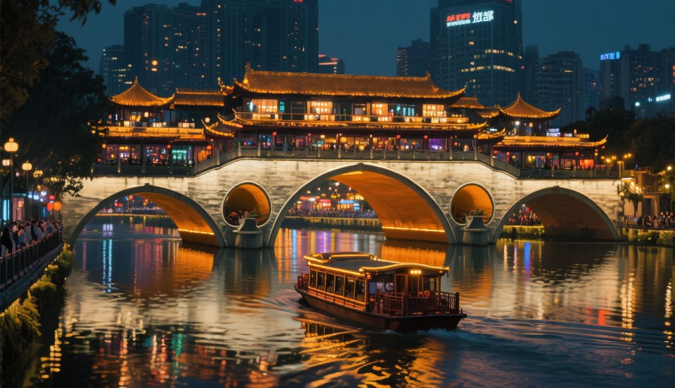 —锦里古街:夜景如梦如幻,小吃众多,可感受三国文化和川西民俗。