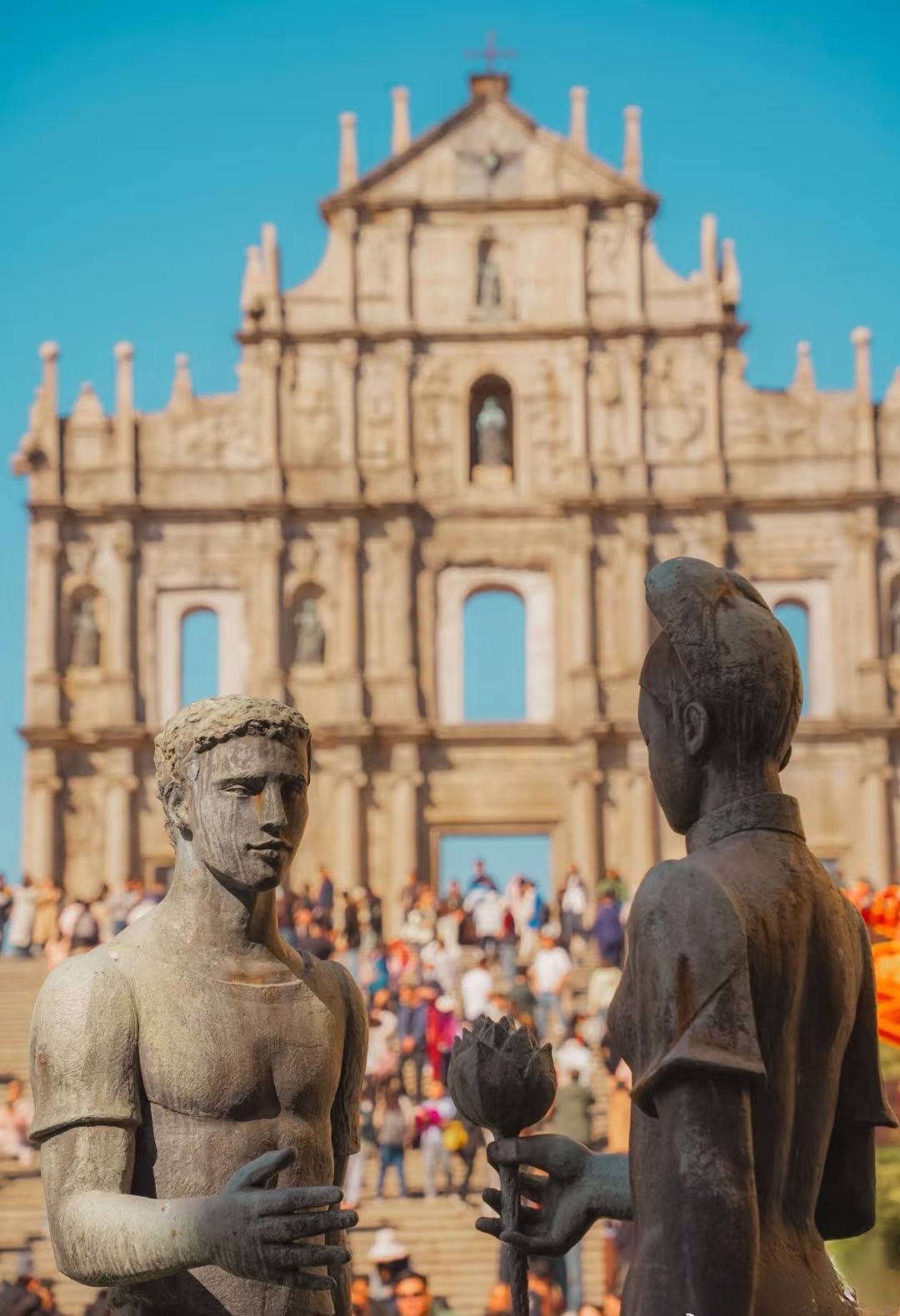 - 大三巴牌坊:澳门标志性建筑,圣保禄教堂被烧毁后残留的前壁,雕刻精美,承载着历史的厚重,旁边的恋爱巷出片率超高。