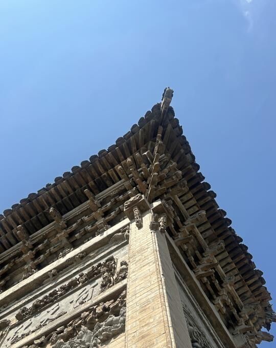 山西真是神奇的地方,这牌楼要换在其他省份,好歹围个栅栏保护一下。可是随处可见古建筑的山西省见怪不怪。就在村子路边,村民开着三蹦子车呼啸而过,到处扬起尘土。