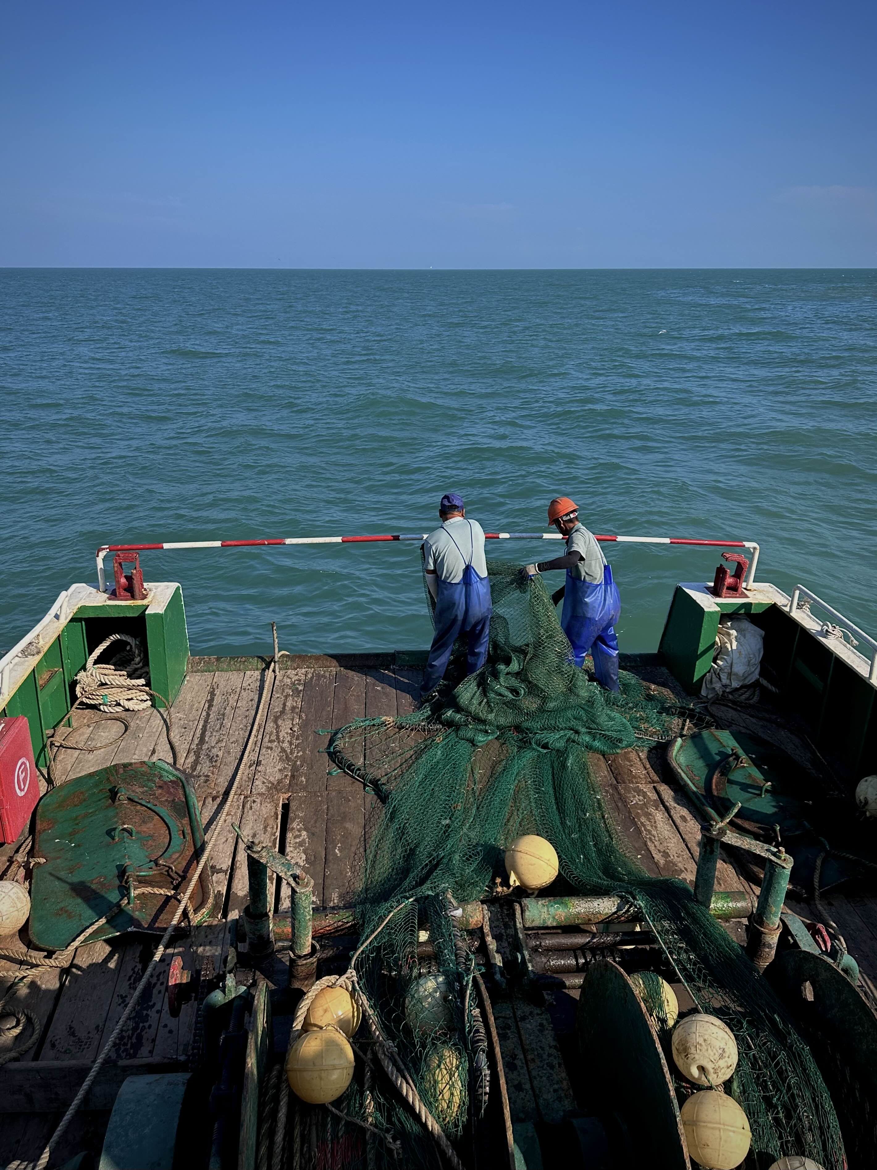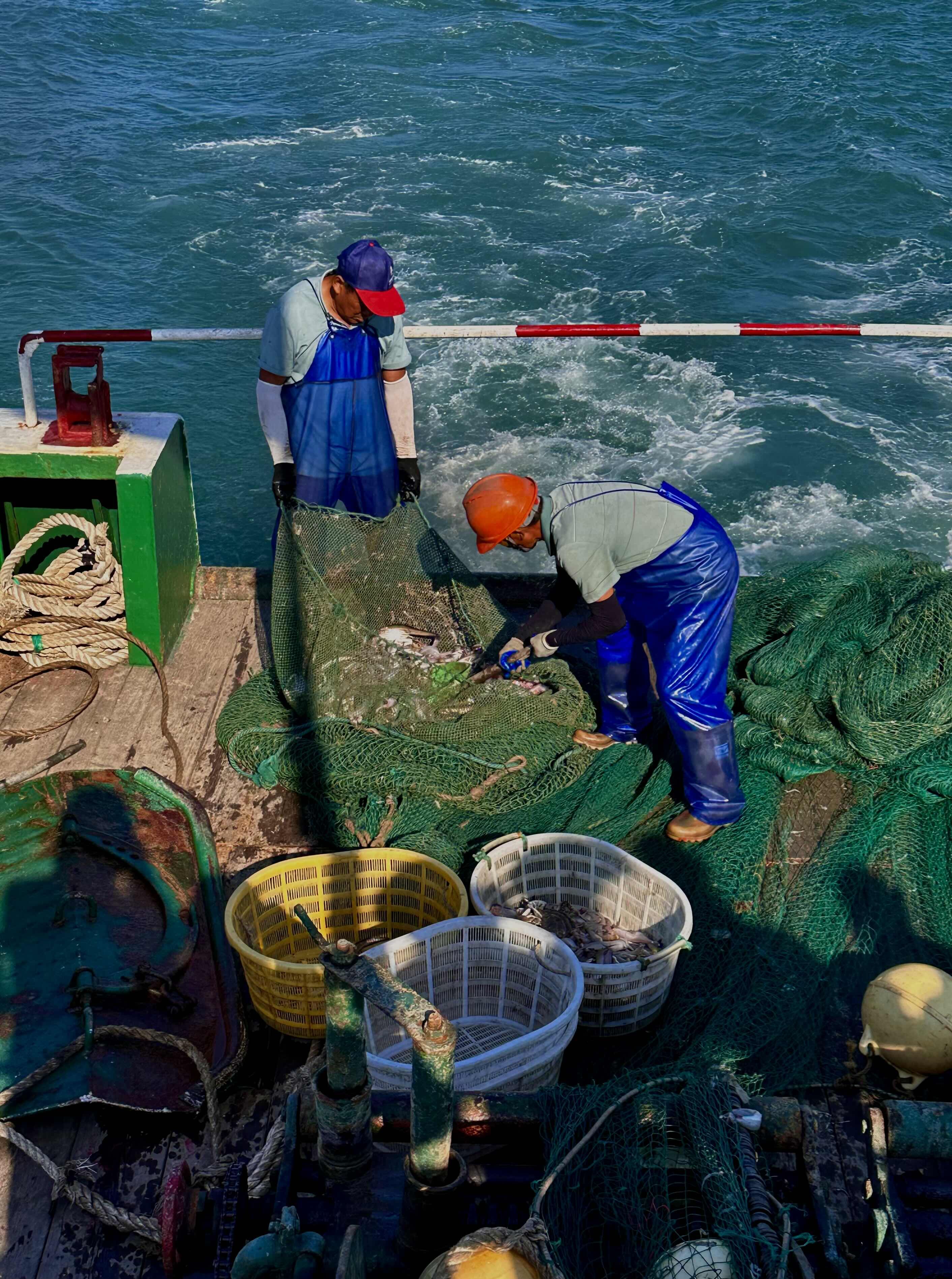 登船后听渔民讲安全须知协助撒网/收网(体验感拉满)分拣渔货(现场能尝刚捞的虾)返程充冰打包