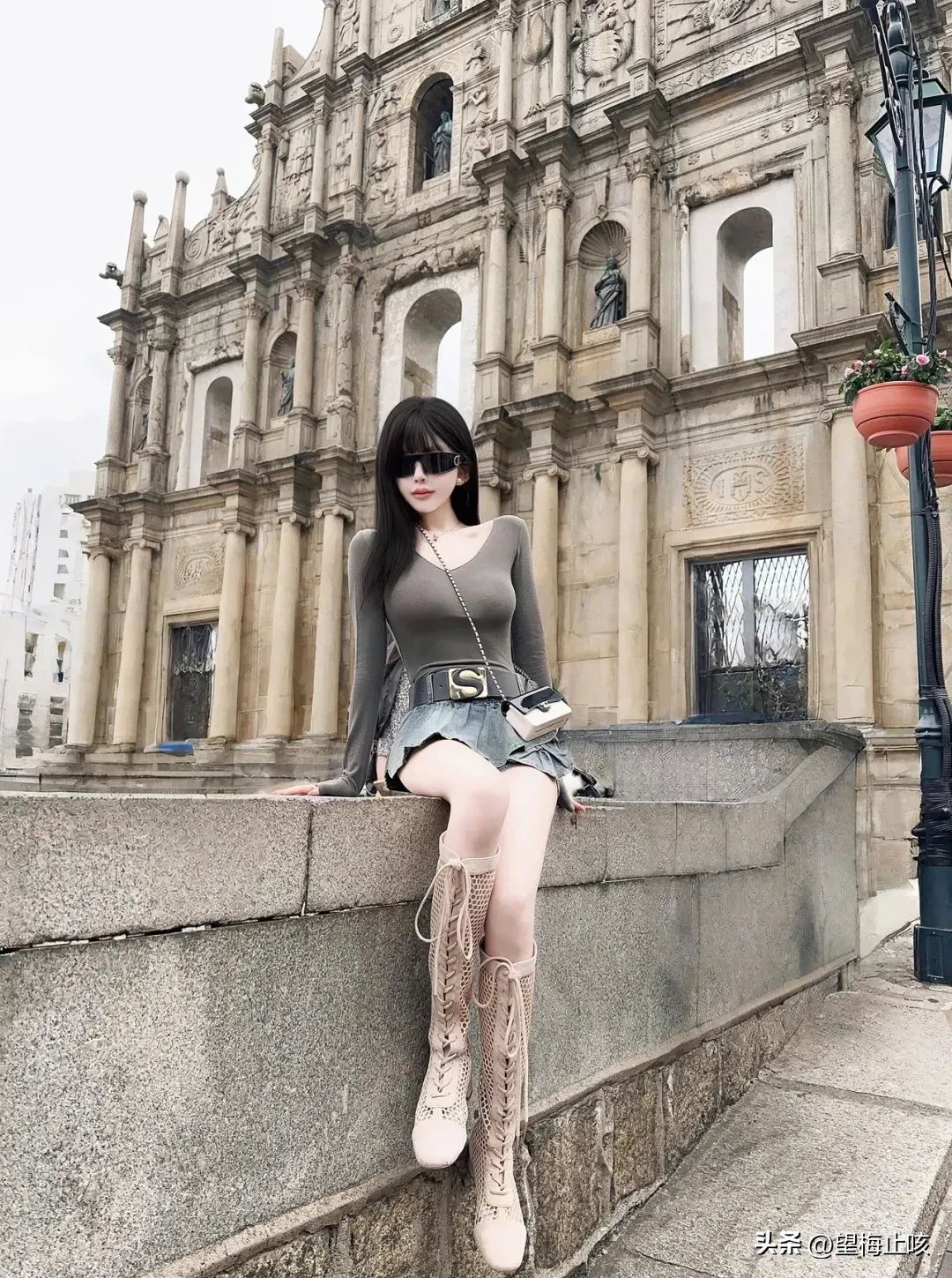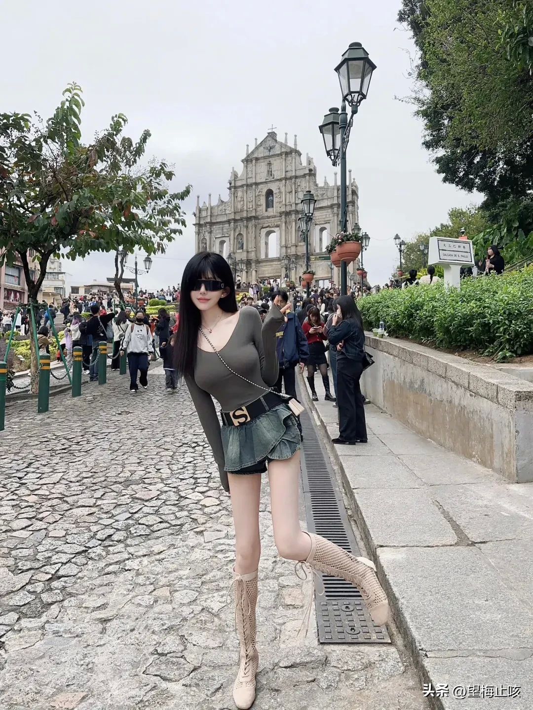 当她来到大三巴牌坊前,古老的建筑与她的时尚穿搭形成了强烈的视觉冲击。大三巴牌坊历经岁月的洗礼,依旧散发着庄重与神秘的气息,而女孩站在它的面前,青春活力与历史厚重感相互碰撞,产生了奇妙的化学反应。她坐在石阶上,戴着墨镜,望向远方,仿佛在感受这座城市的脉搏,也在这一刻,成为了澳门街头一道令人难以忘怀的风景,吸引着众多游客的目光,也让这座城市的魅力更加多元而迷人 。#简行唯美的美女# #窈窕淑女 、# #诗诗带你去远方#