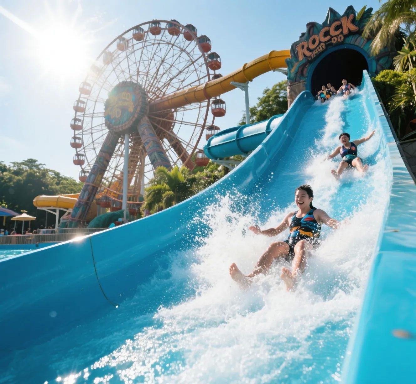 - 摇滚巨轮:全球首创360°旋转滑道,坐上去就像被扔进巨型洗衣机,天旋地转的刺激感,敢来挑战吗?