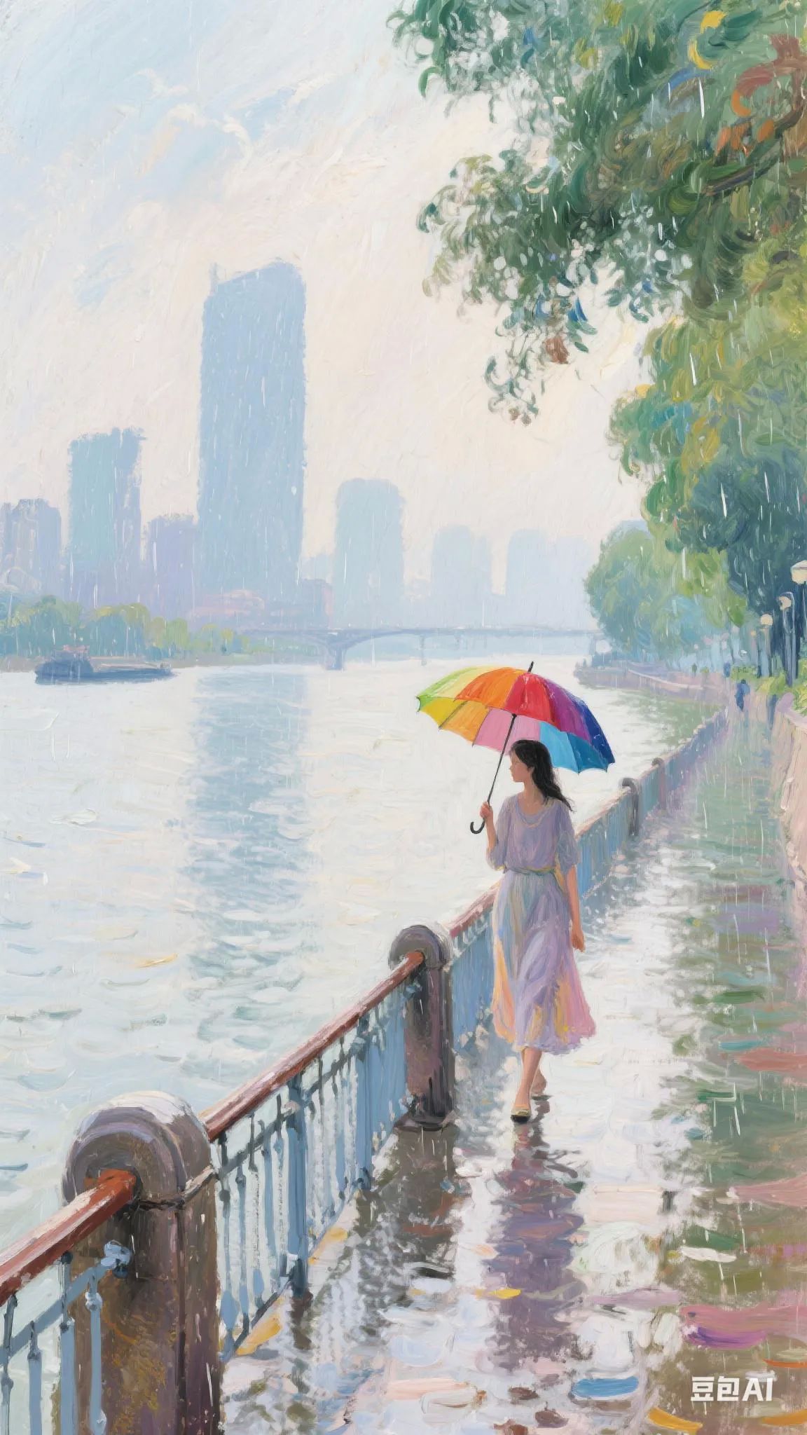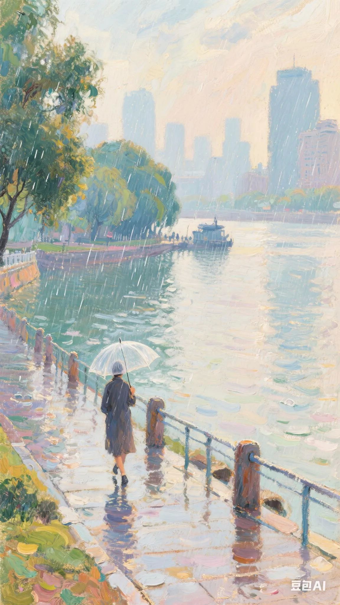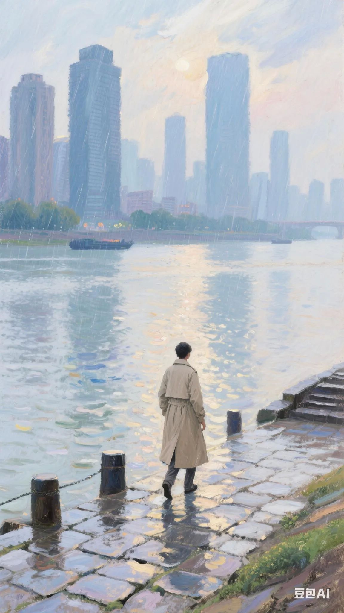 二、江畔夜景:雨中江城浪漫