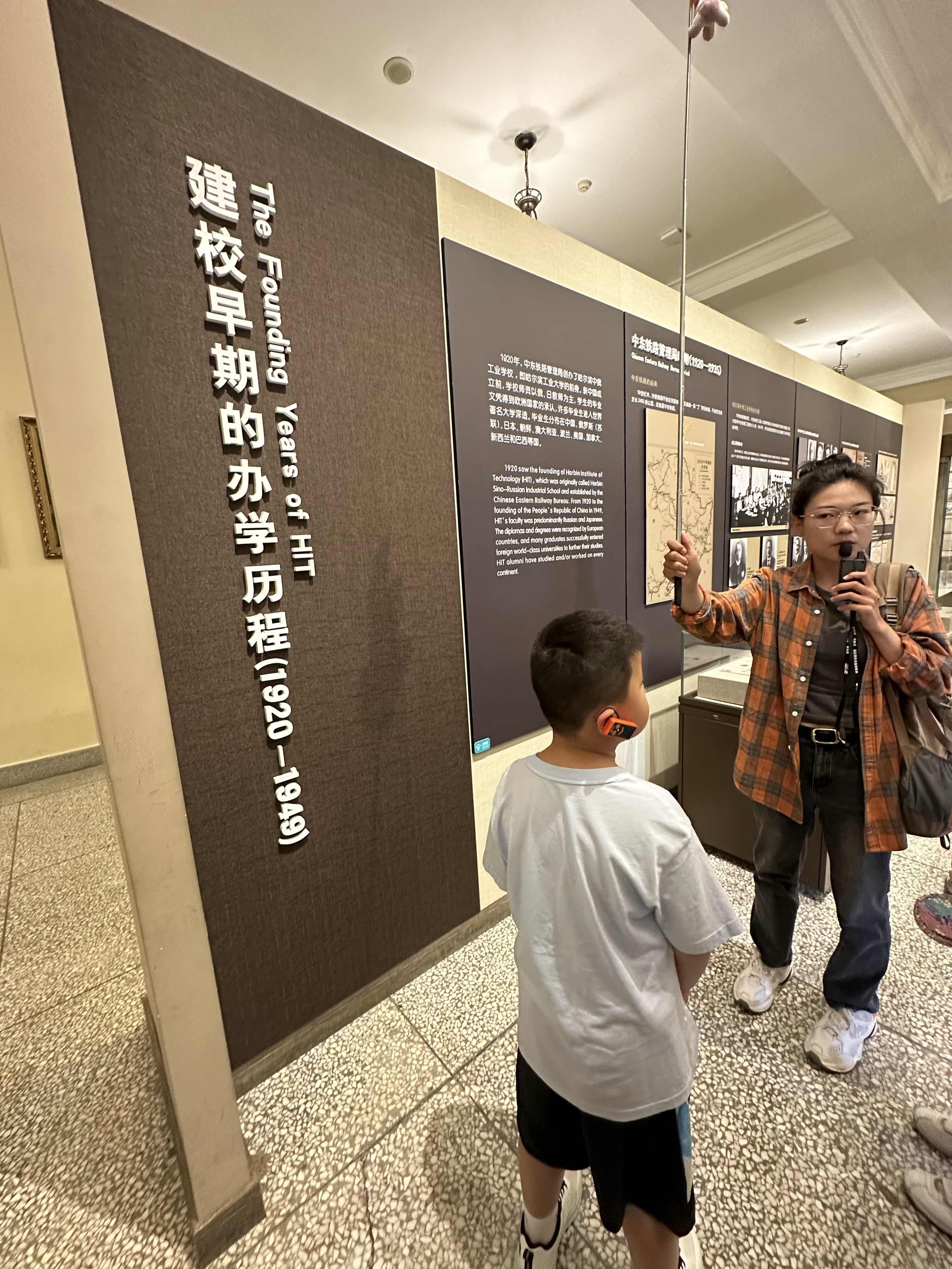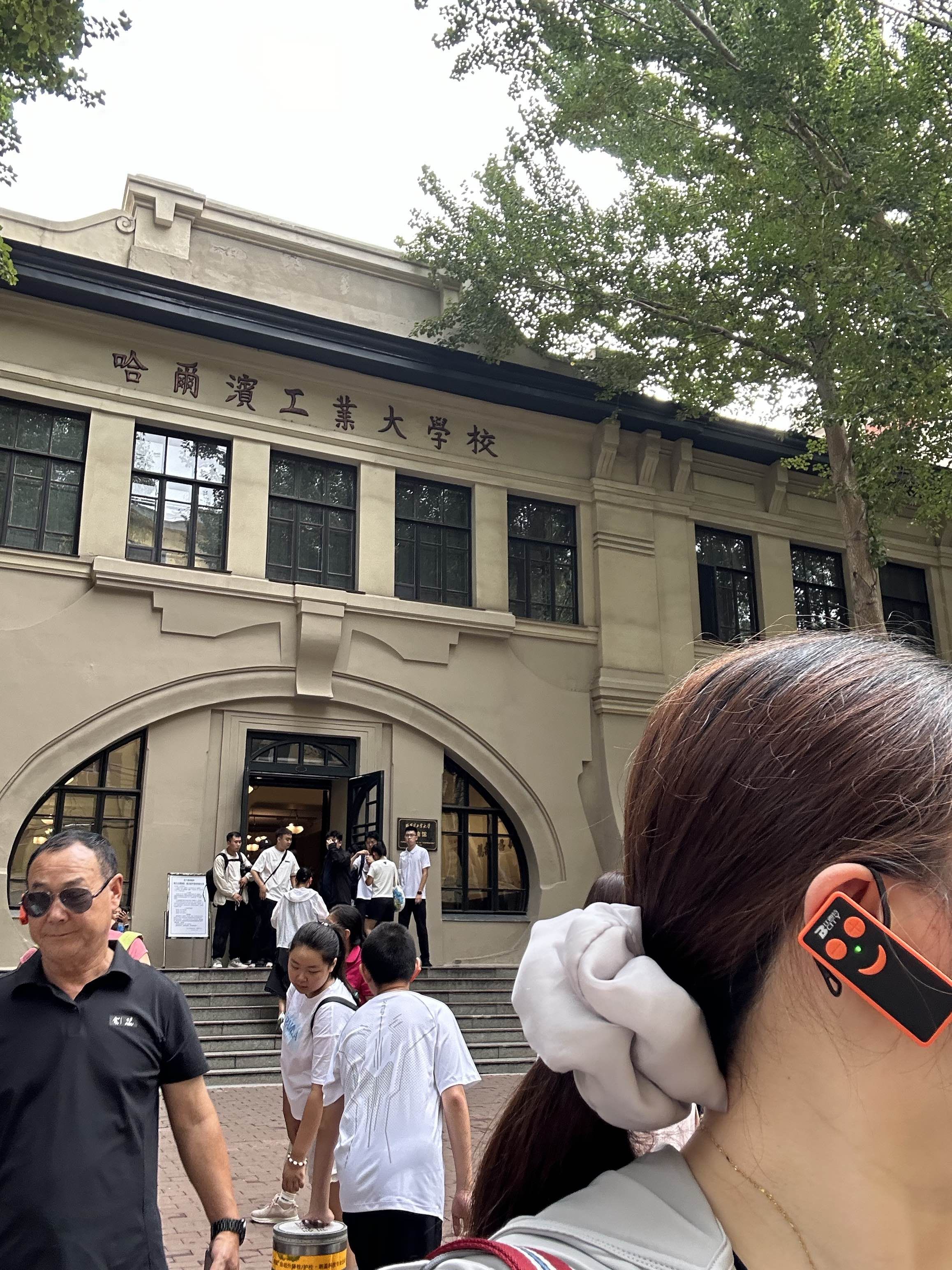 今天早上六点半就起来了,孩子也起的很早,因为今天有个赶早的行程,8点15就要到哈工大参观[耶]吃过早饭后,我们就马不停蹄的来到哈工大博物馆门口等待,参加了一个小型研学班,全程有讲解员讲解哈工大的建校历程今天天气比昨天热多了,不过也比石家庄凉快[笑哭]校园是挺大的,坐着校内大巴从大门口到里面的博物馆坐了有十几分钟,校园更像是个大公园,绿化做的很好,还有小河,好大学这些都是基本配置[呲牙]