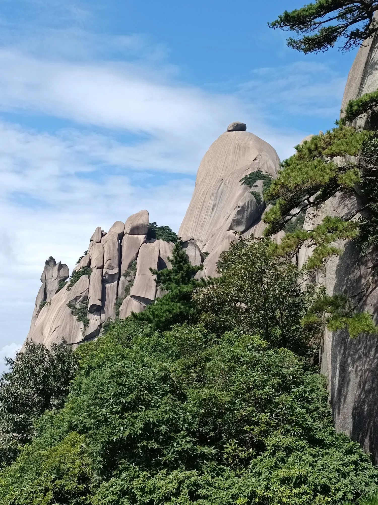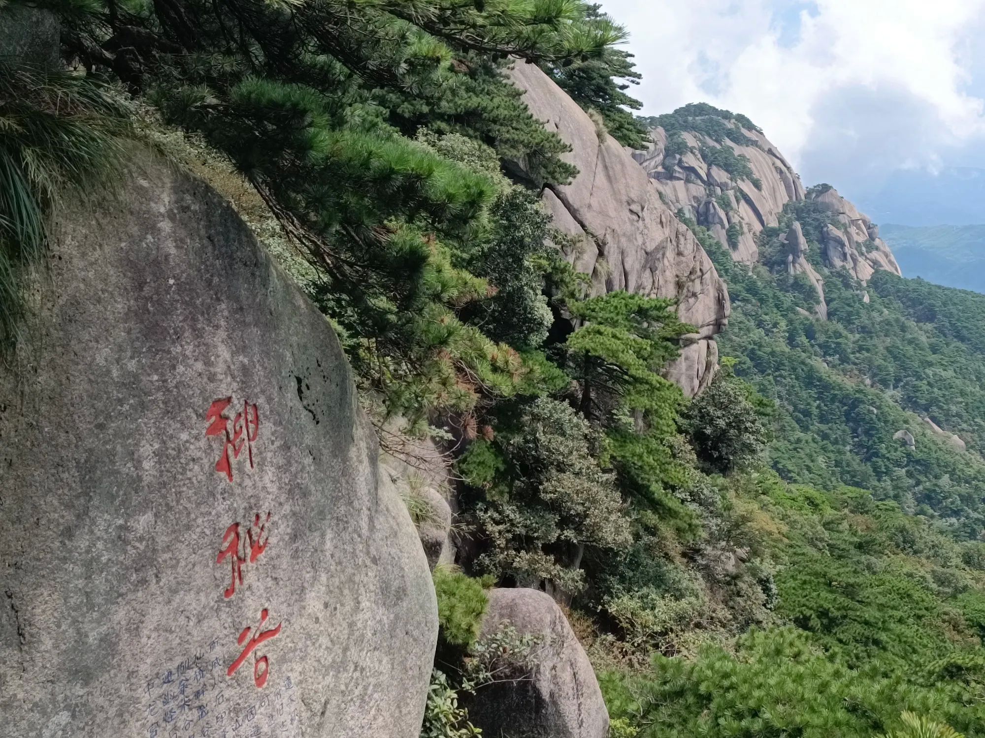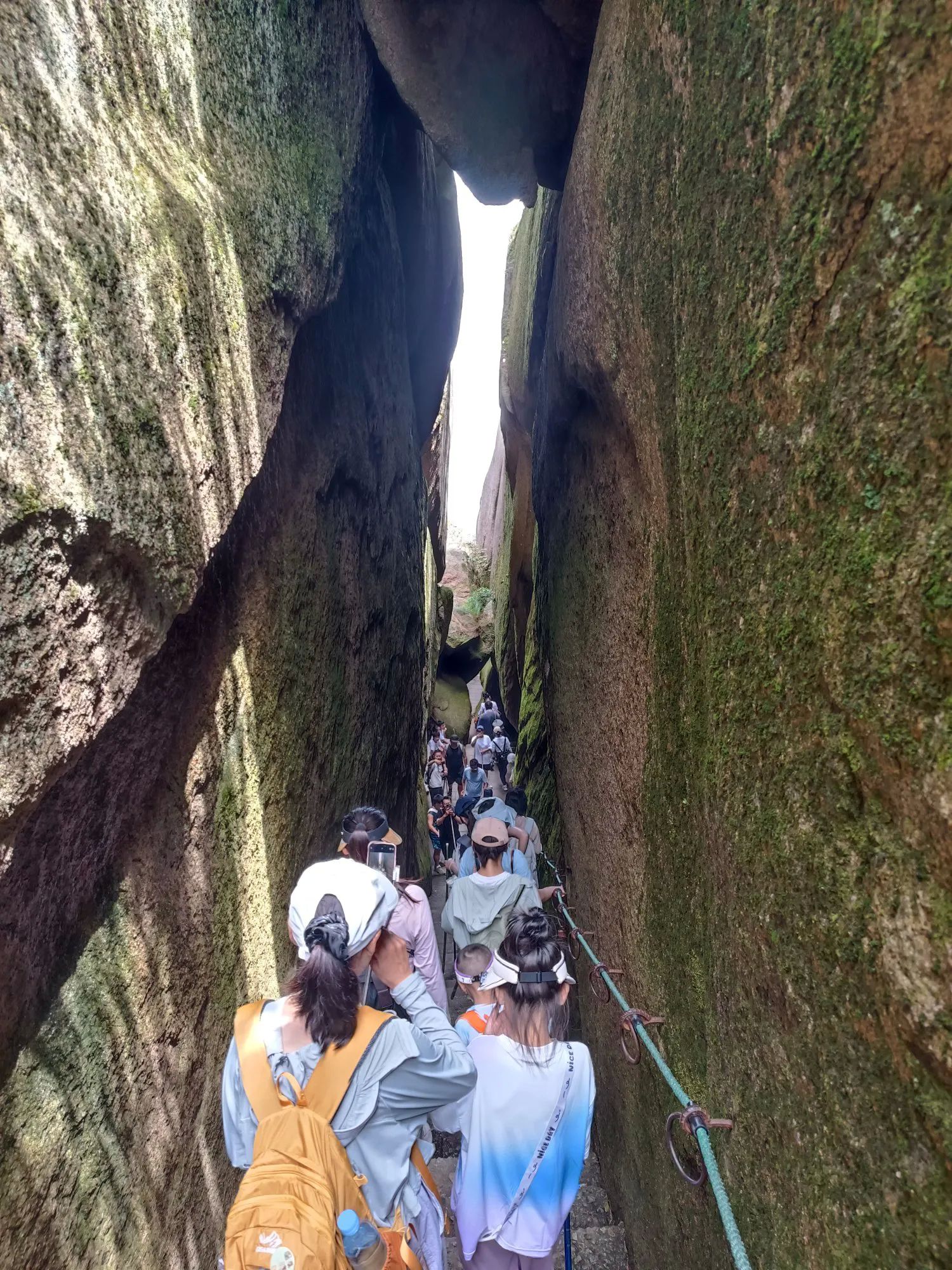 奇峰、怪石、幽洞、峡谷、山松、清泉、湖水……天柱山的美景基本上都全部领略到了。爬山给人最大的感受就是路上虽然也很晒,但山风吹起来特别凉快,像天然空调一样,山里温度明显要低了不少,山洞里更是舒服惬意,没有蚊子,好像也没有看见鸟,只有美景和雾,我们上去时候天气很好,天柱峰看得清清楚楚,但风云突变,突然一阵雾过来,天柱峰就隐身雾中看不见了,像个害羞的小女孩躲在大人身后,过一会又若隐若现慢慢出来了,小朋友特别喜欢。
