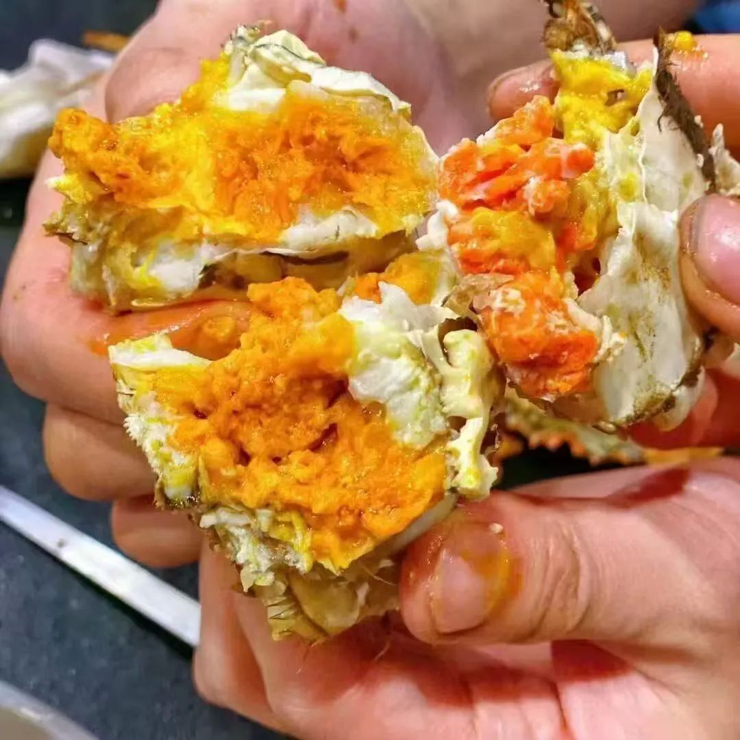 不像那些花里胡哨的做法,清蒸才最能吃出蟹的本味~公蟹的膏像凝脂一样糯,母蟹的黄结结实实,咬一口直冒油!剥开来金黄油亮的,淋点醋抿下去,鲜到舌头都要化了[流泪]