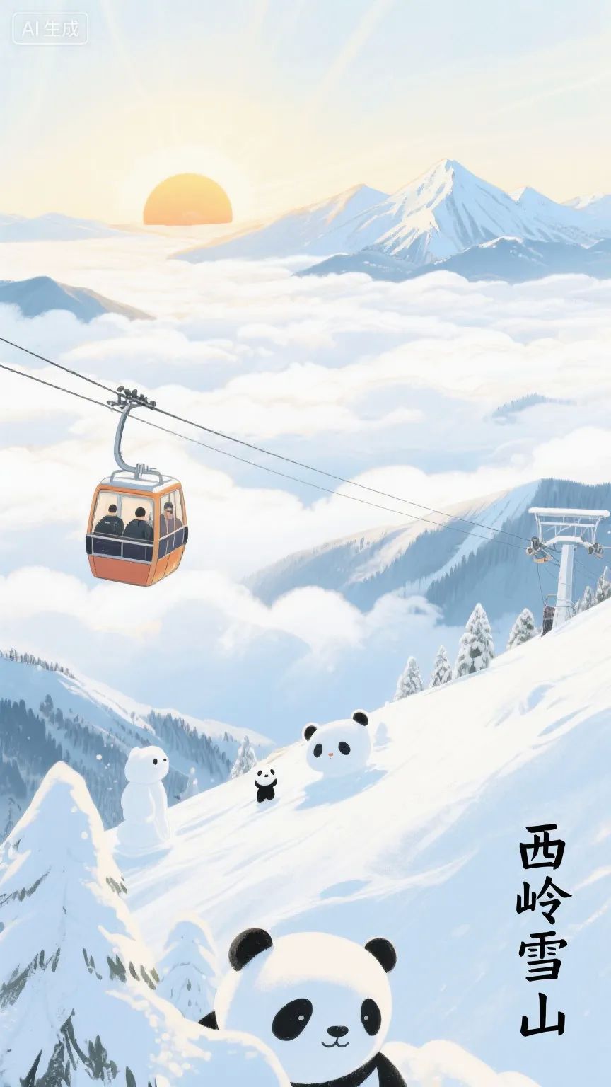 - 上午:前往西岭雪山,搭乘索道上山,欣赏云海、日出、日照金山等自然景观(天气状况良好的情况下),还可以参加滑雪、雪地摩托等娱乐项目。