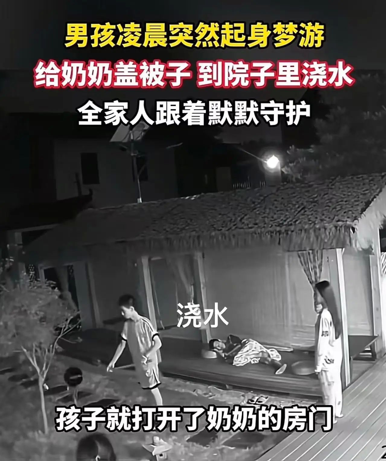 事情的起因看似普通,却充满了令人难以置信的细节。那天凌晨,家人都已入睡,只有男孩在梦中像被某种看不见的力量引导,精准无误地走到奶奶的房间。他没有碰到任何家具、门框,仿佛被一股隐形的力量保护着。更令人难以置信的是,他竟然找到了奶奶的被子,把它盖在奶奶身上。这一幕,不仅让全家人目瞪口呆,也让网友们纷纷猜测:这是普通的梦游,还是隐藏着某种超能力?