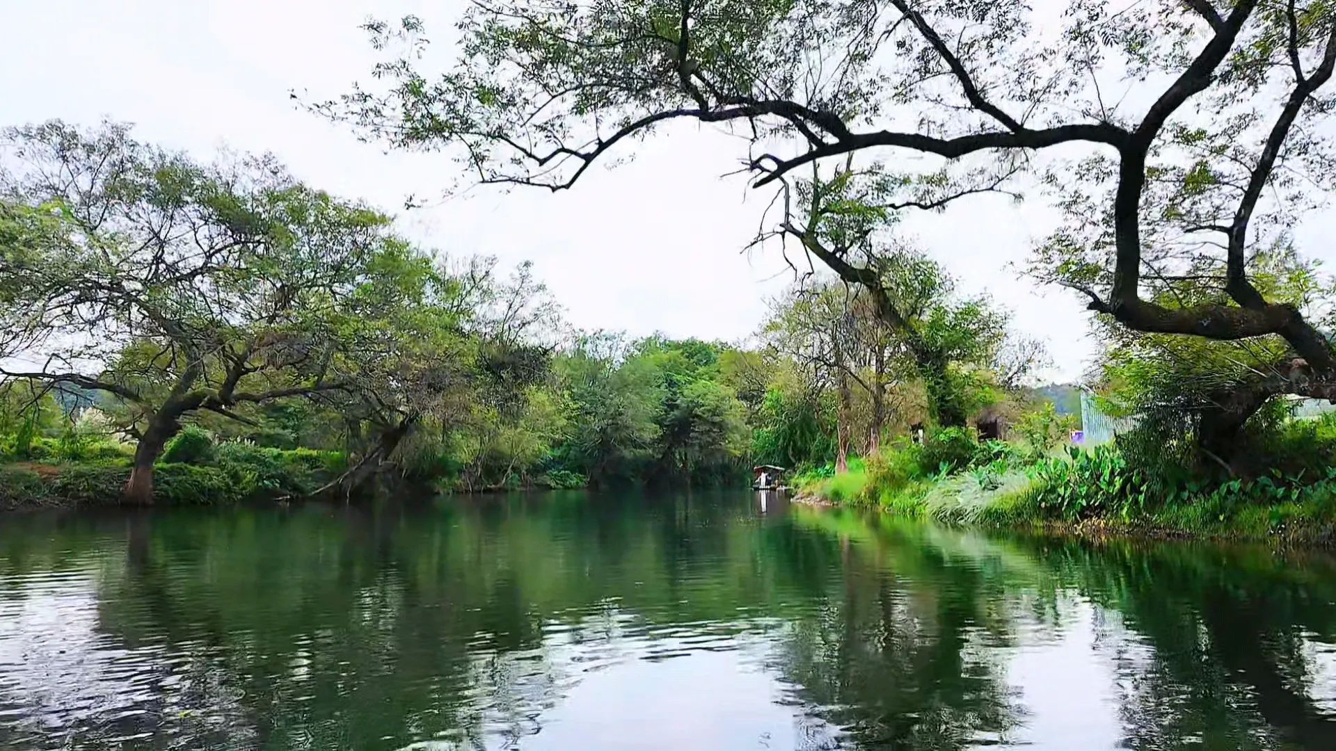 深秋的季节,碧绿的河水平静如镜,坐在游船上,呼吸着新鲜的空气,享受两岸美丽的风光
