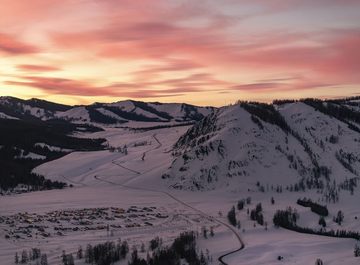 3. 禾木村:图瓦人原始村落,白桦林环抱,晨登哈登观景台拍炊烟木屋,冬季雪蘑菇童话世界,体验马拉爬犁、毛皮滑雪。