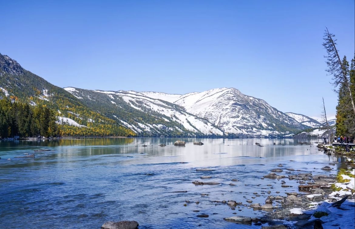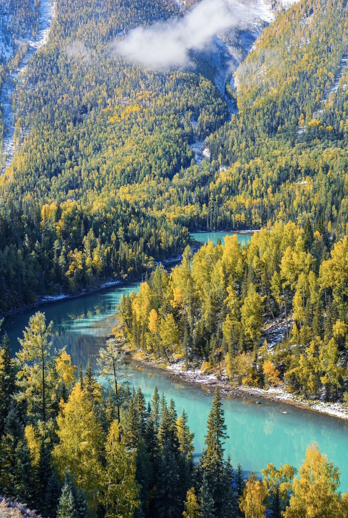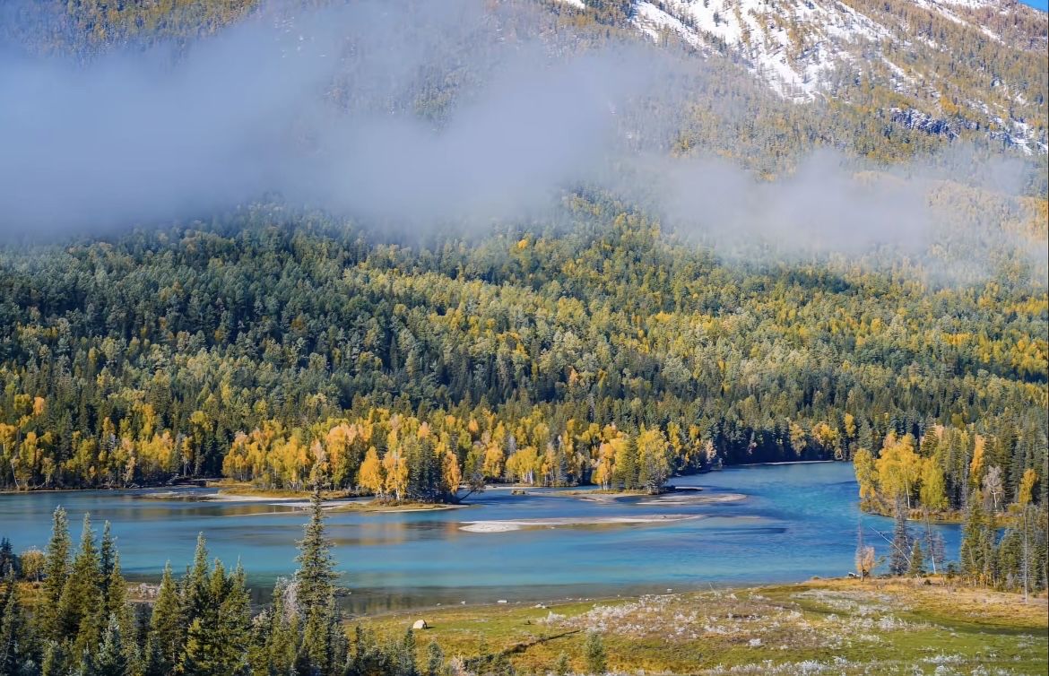 1. 喀纳斯湖:碧绿湖水蜿蜒如龙,传说中“湖怪”栖息地,乘游船或徒步栈道探秘,登观鱼台俯瞰全景,晨雾缭绕时最似仙境。