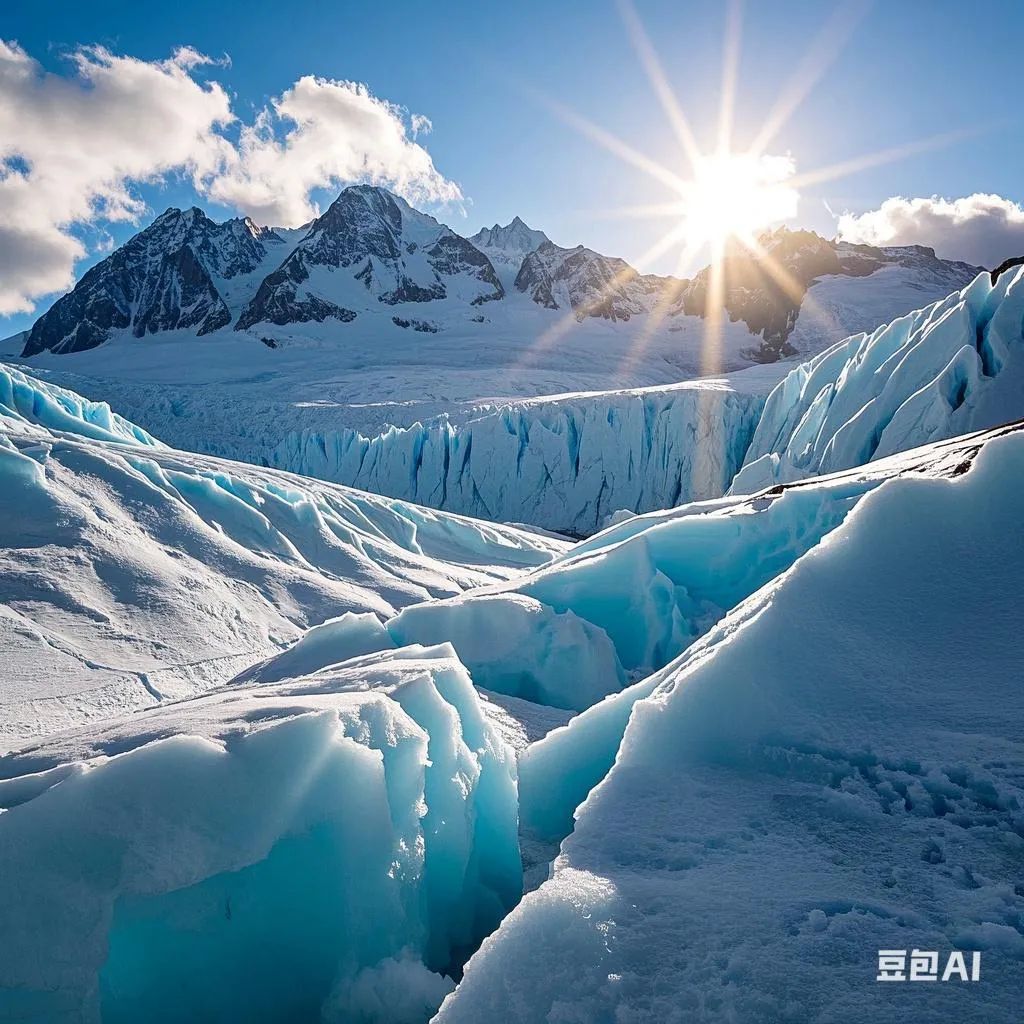 "雪山融水形成的牛奶河,野花丛中的土拨鼠张望,冰川近在咫尺的视觉冲击,广角镜头畸变效果,高饱和度与自然柔光平衡"