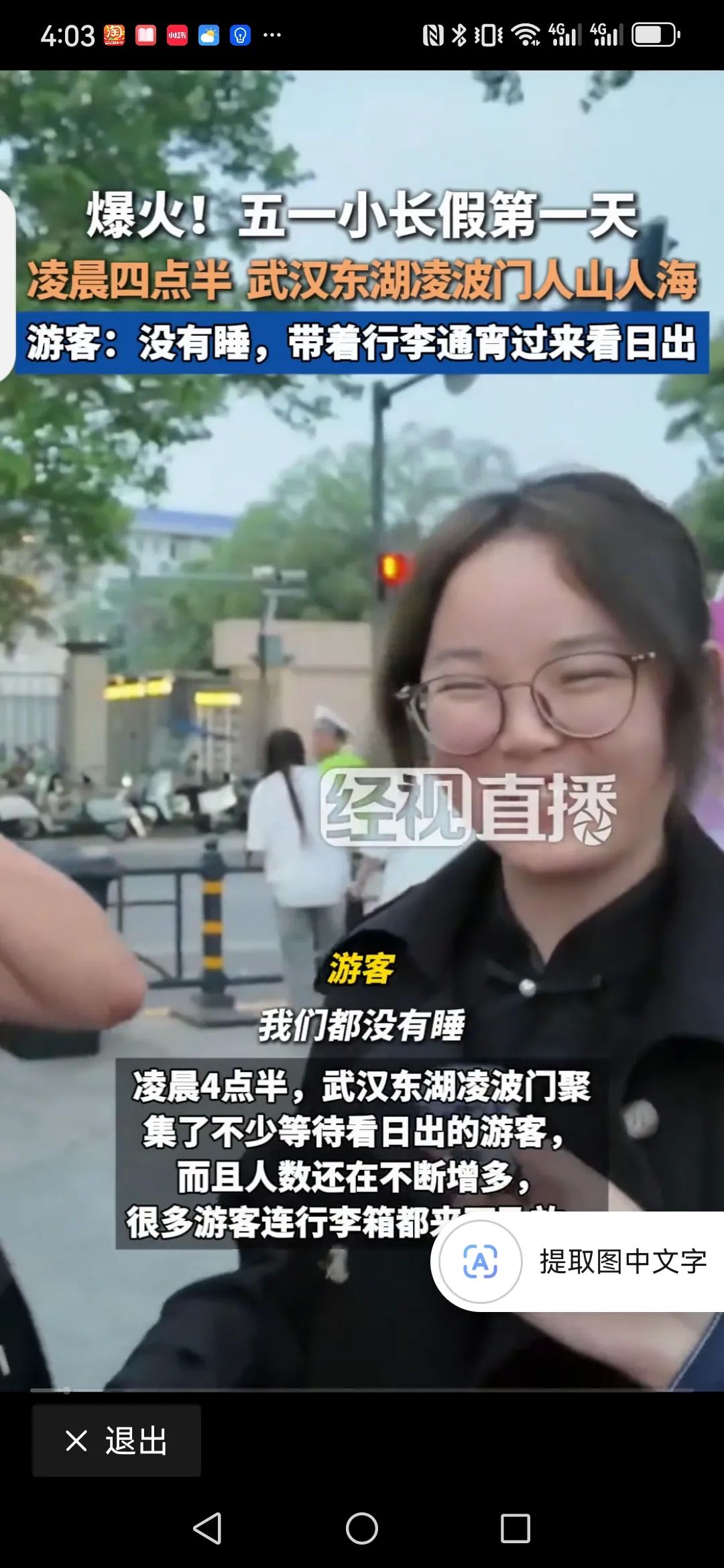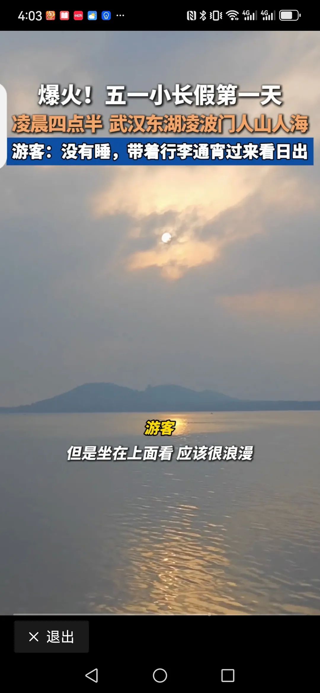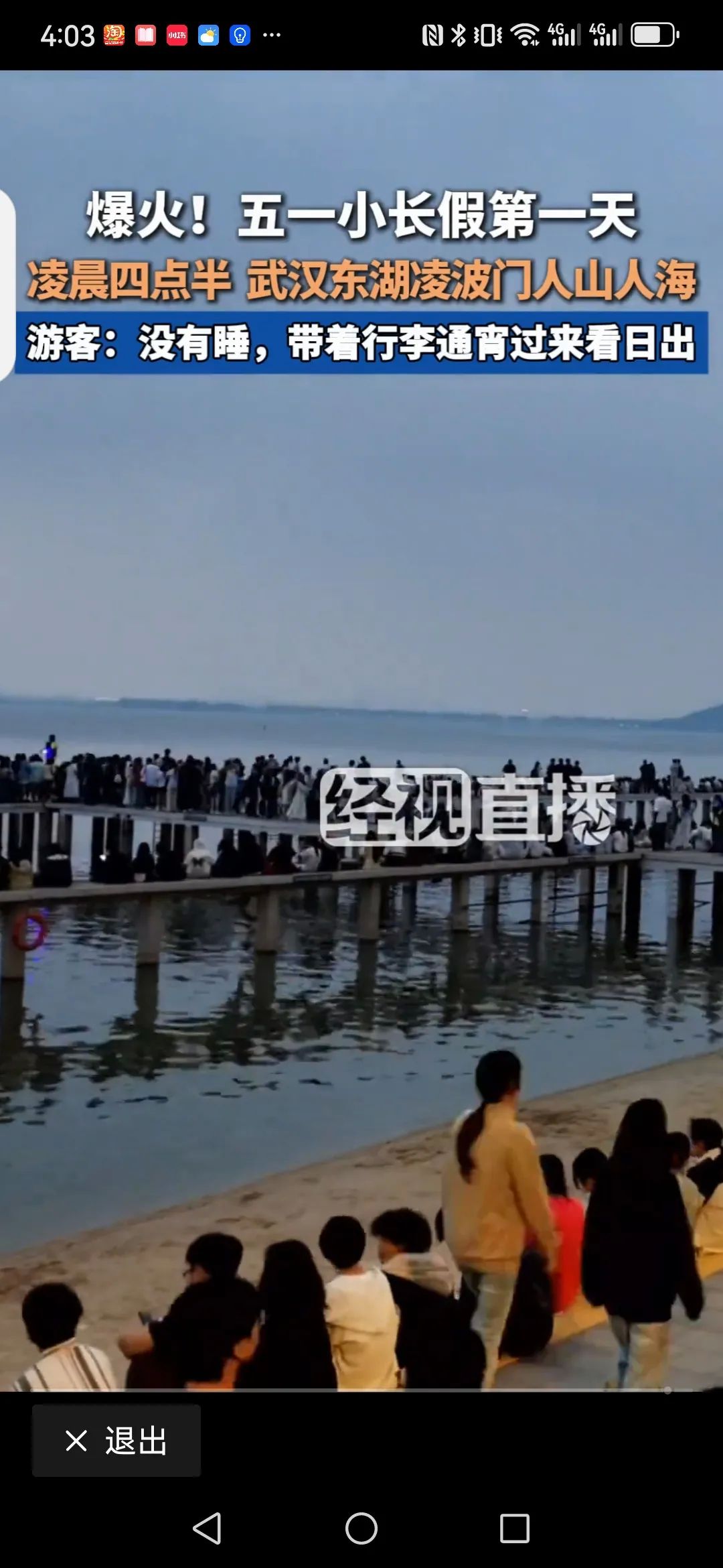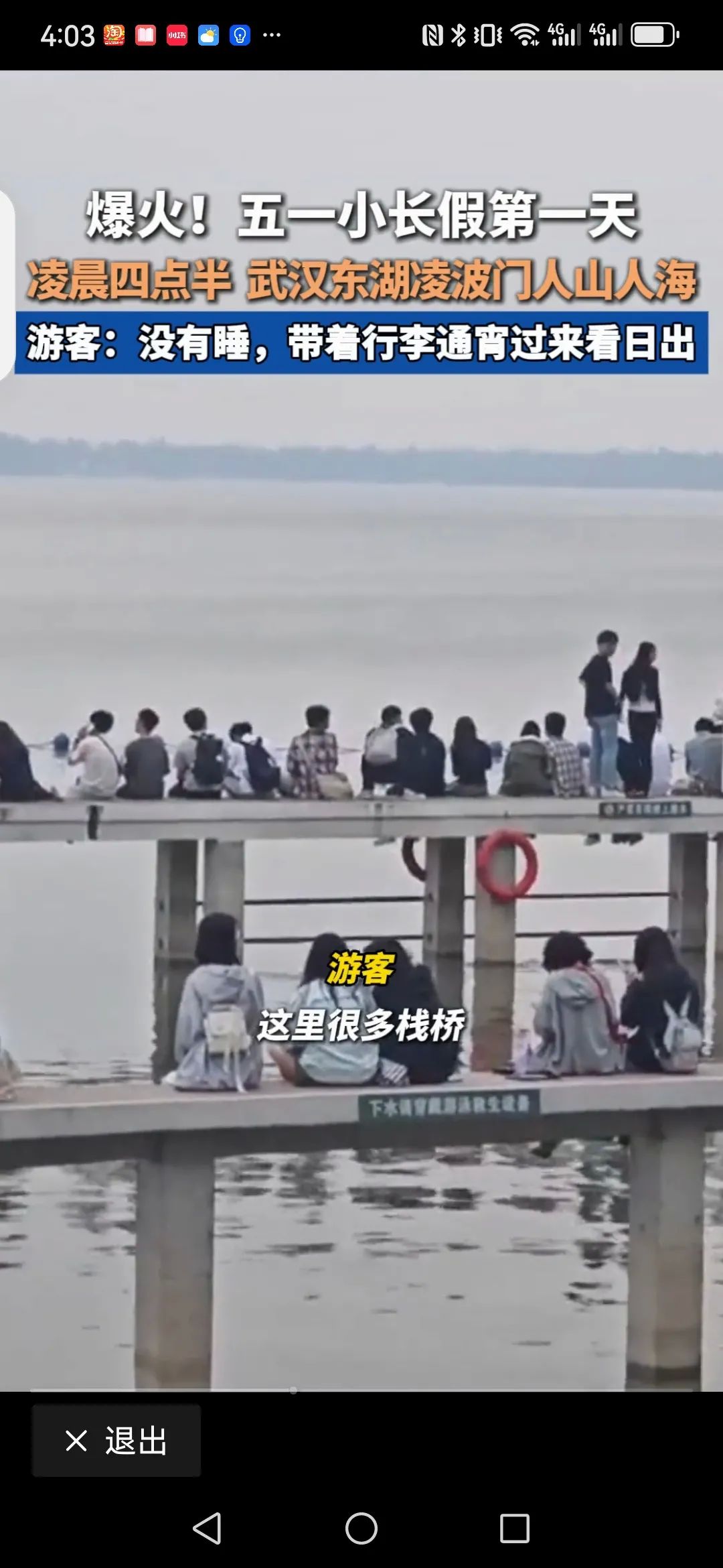 标题:爆火!五一小长假第一天,武汉东湖凌波门凌晨四点半人山人海,游客通宵只为看日出!