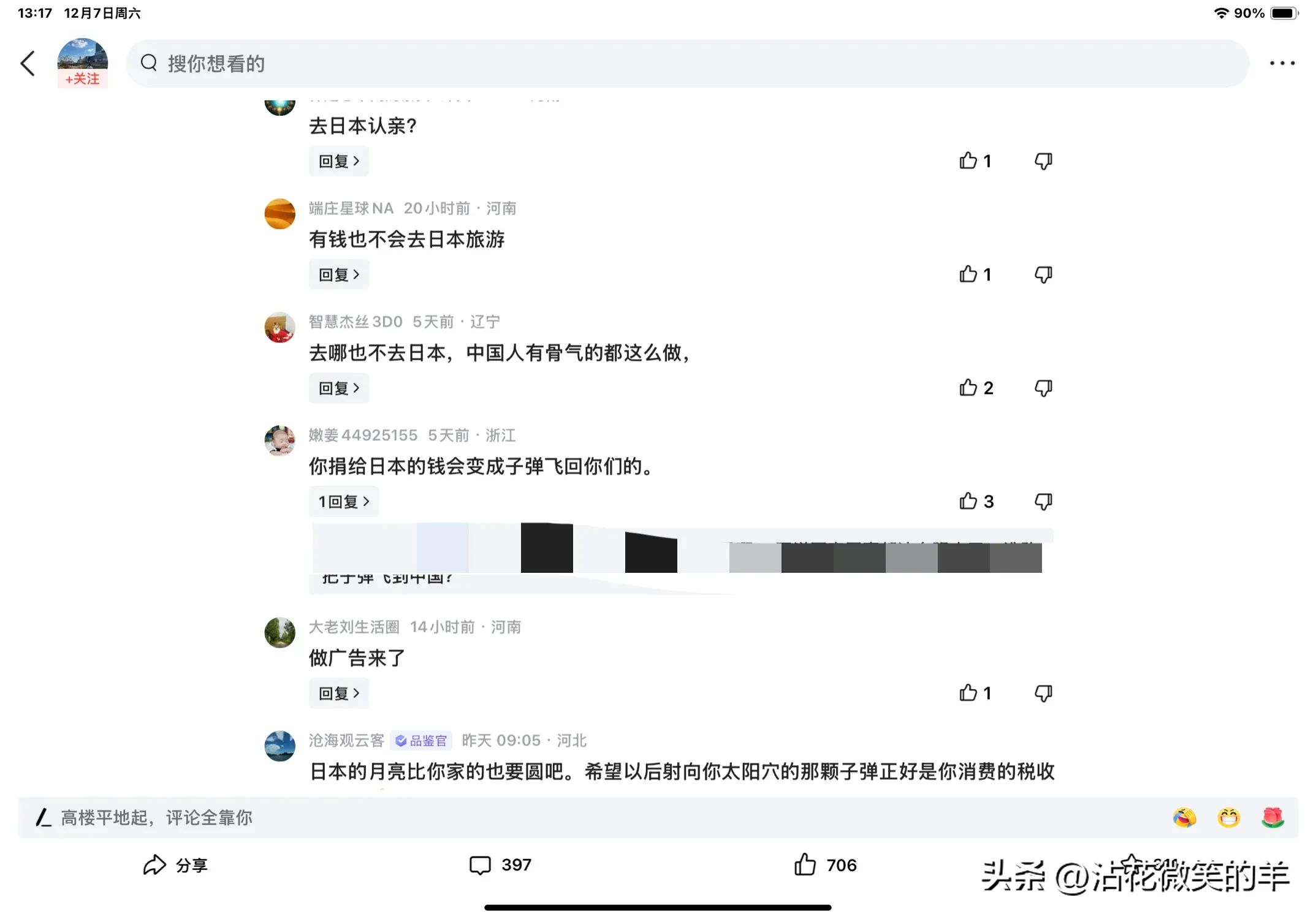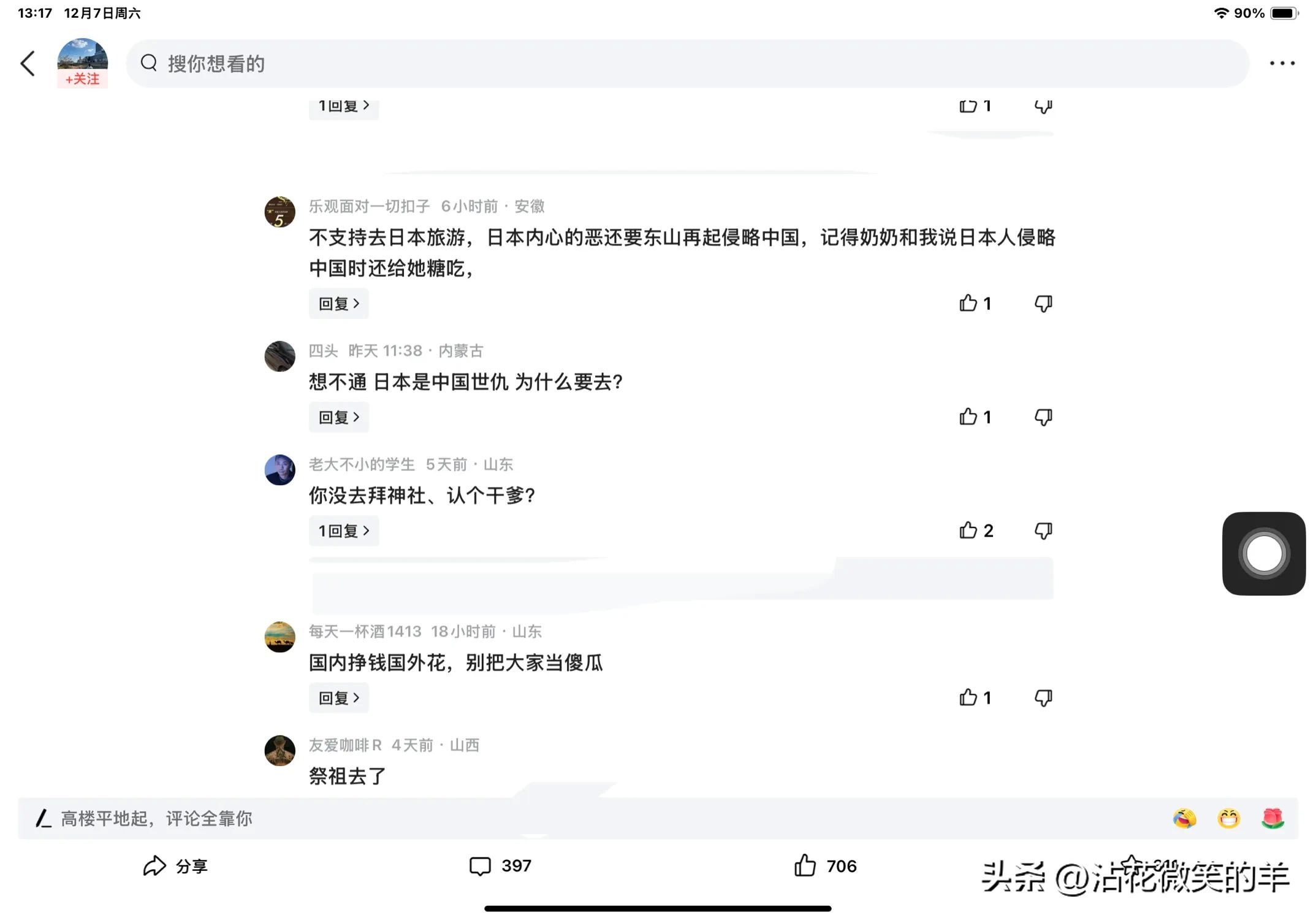 3、直接开骂类:这类人较少,但挺可怕。从留言看,他们有的活在仇恨中、有的认为今天的日本就是当年的帝国主义日本、有的站在道德最高点上、有的明显抗日神剧看得太多……用着嘲讽、刻毒的语言,责骂着别人。摘录几条有代表性的: