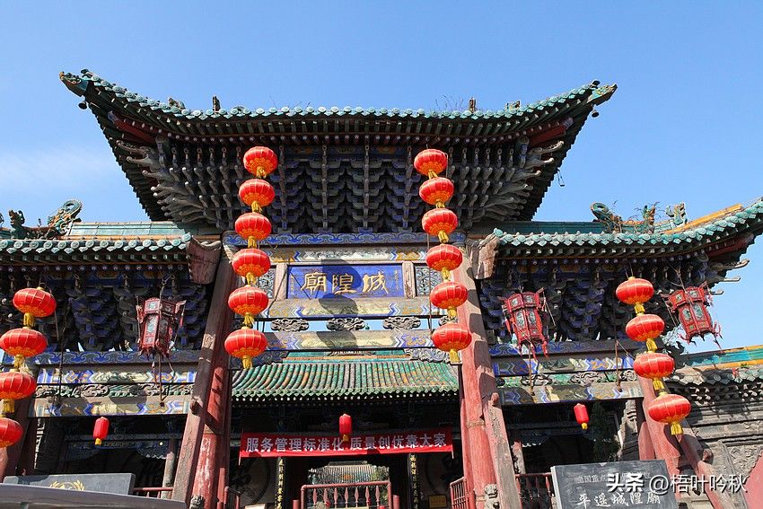 - 平遥城隍庙:是一座官祀道教庙宇,创建已久,咸丰九年失火后重建。其为三庙合一的格局,主庙城隍庙保平安,东侧皂君庙管吃喝,西侧财神庙管财源广进,这种庙中套庙的格局在全国独一无二。