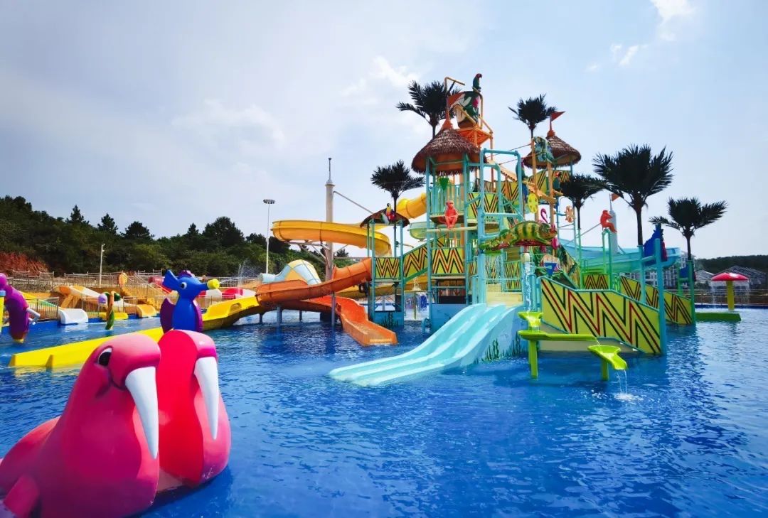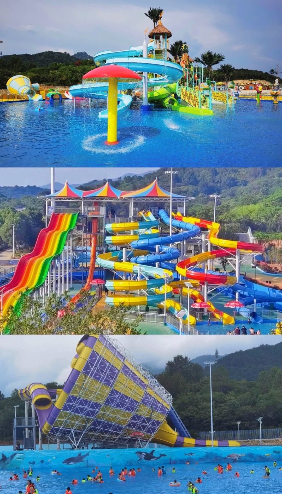 - **萌娃专属水宇宙**:1.5-2米儿童迷你水寨暗藏喷水机关,小勇士可挑战4.5米彩虹滑道“起飞初体验”;家庭组合滑梯以低坡度设计守护安全,落水池溅起的水花裹着纯真欢笑。