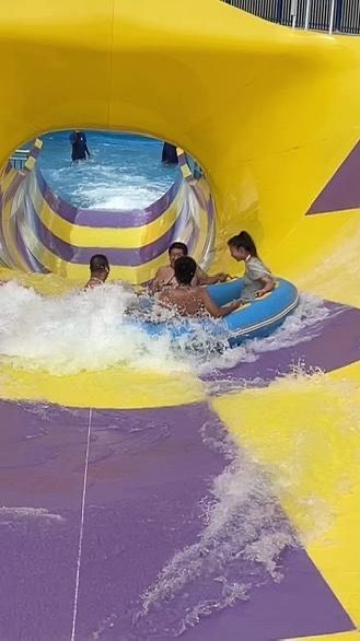- **亲子共闯刺激关**:双人皮筏冲入“小喇叭滑道”,温和俯冲与回旋带来全家齐声的“哇塞时刻”;5000㎡海啸池中,孩子抱着浮具随3米巨浪起伏,父母在侧守护探险初心。