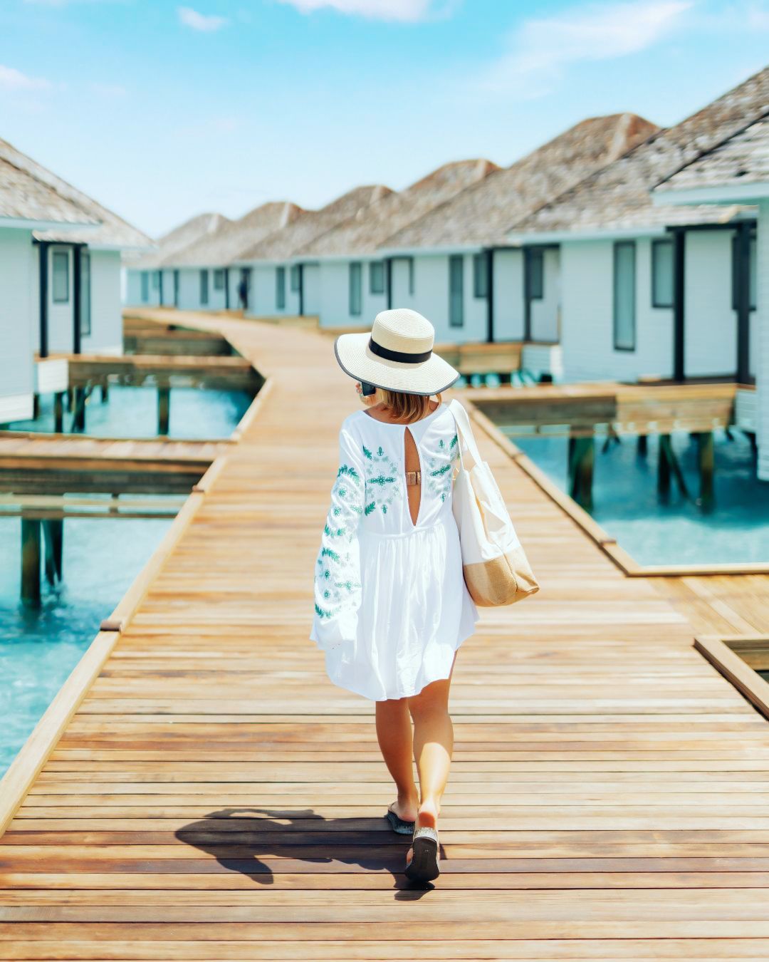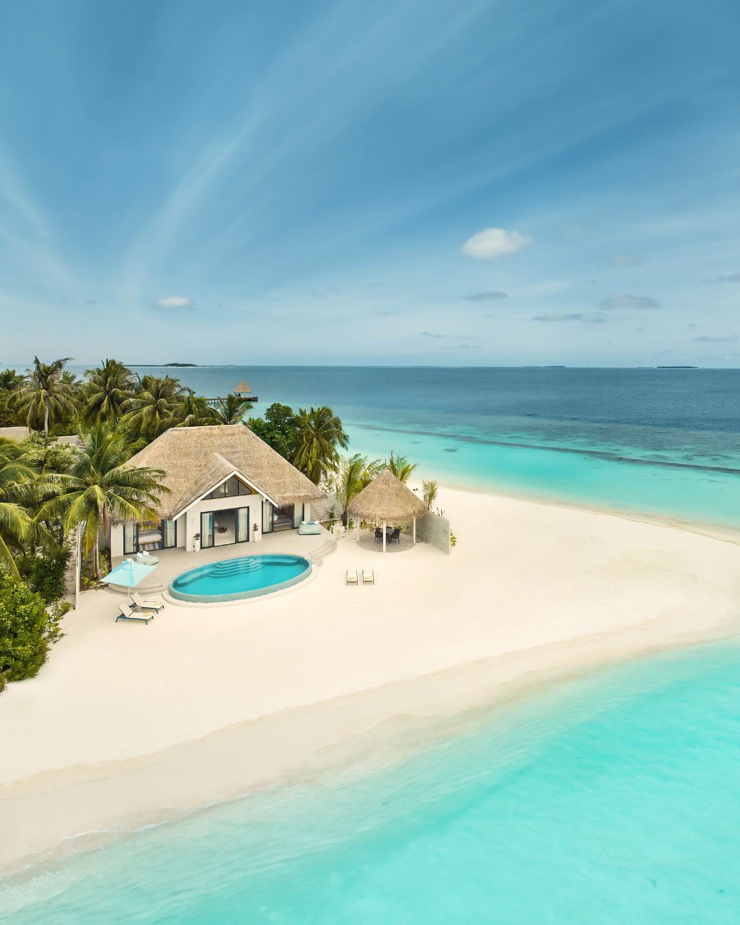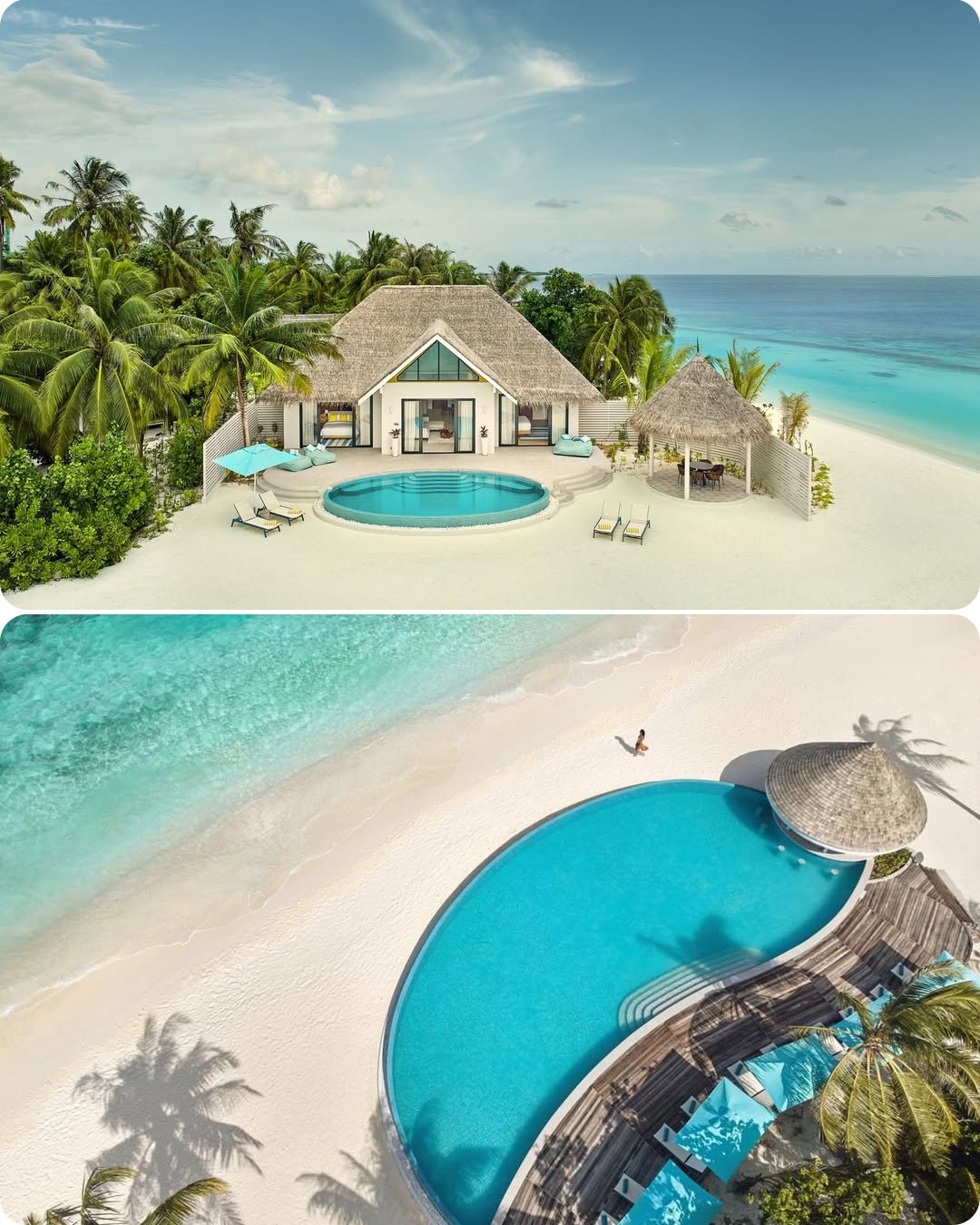 • 全岛76间豪华客房,其中沙屋51间,水屋25间,共有10种房型可选,房间采用极简明亮风,非常符合年轻人审美;